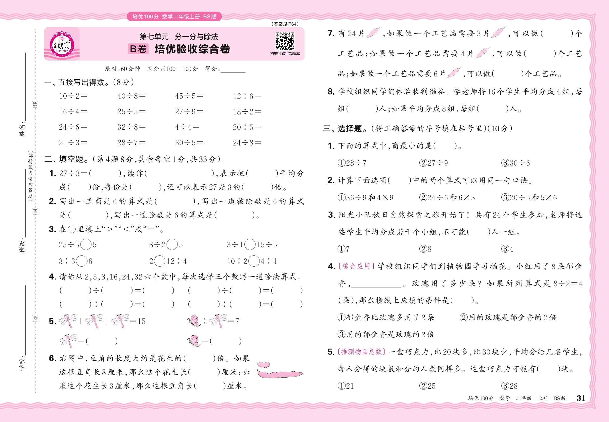 2024秋上册二年级数学北师版 第七单元B卷 培优验收综合卷