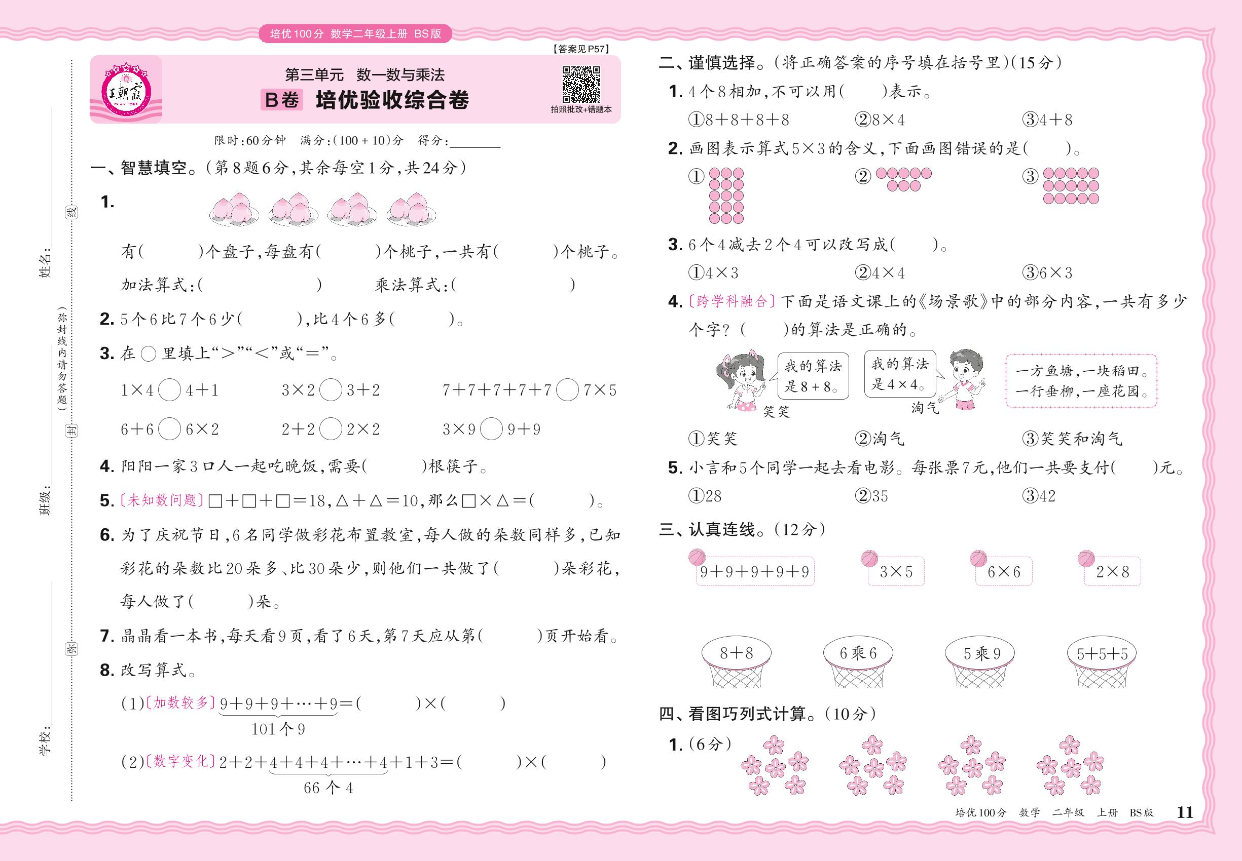 2024秋上册二年级数学北师版 第三单元B卷 培优验收综合卷