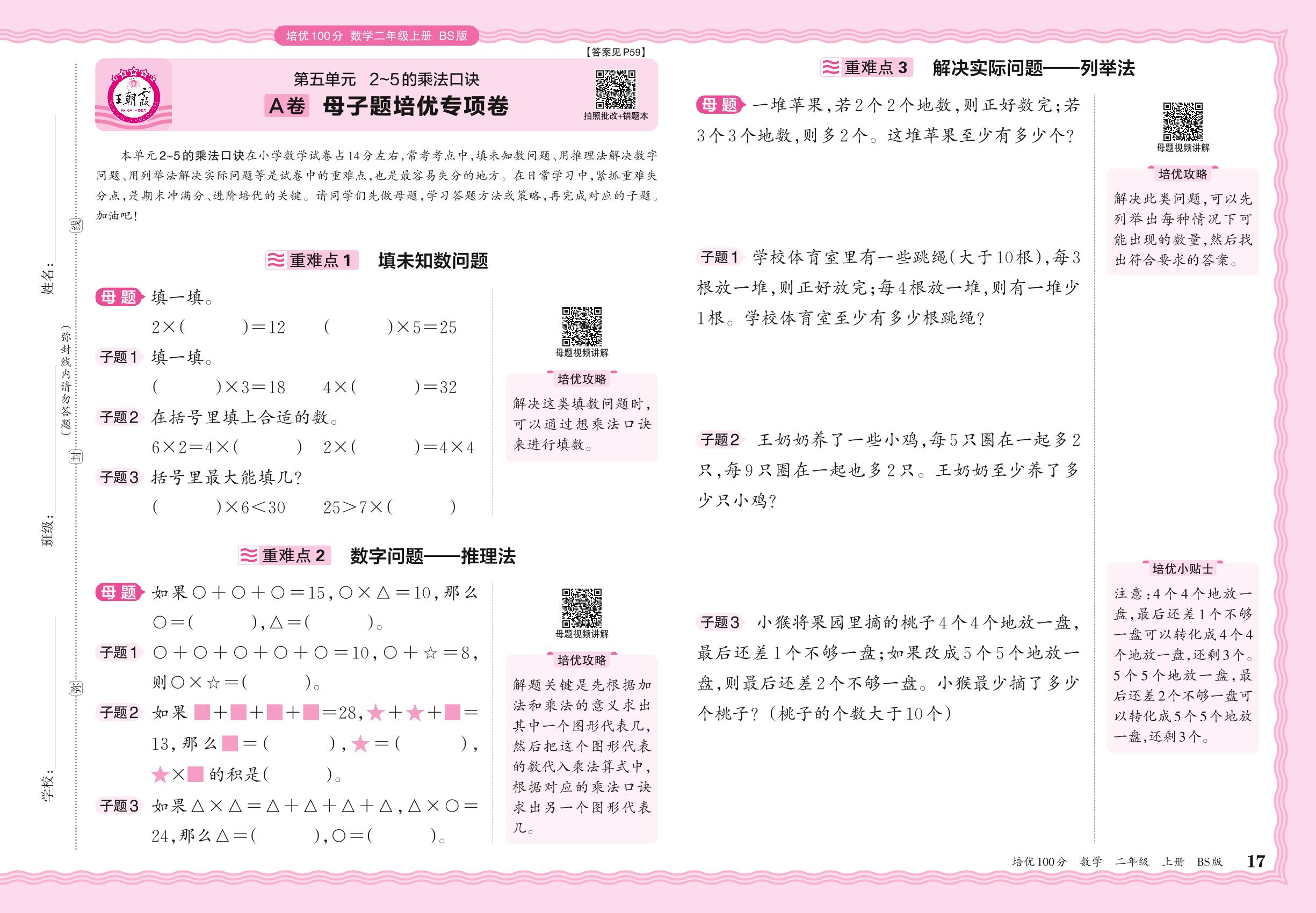 2024秋上册二年级数学北师版 第五单元A卷 母子题培优专项卷