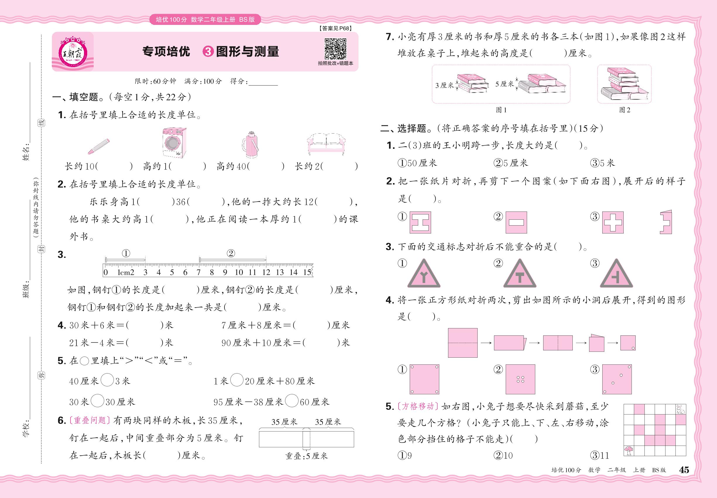 2024秋上册二年级数学北师版 期末专项PY版·图形与测量【3】