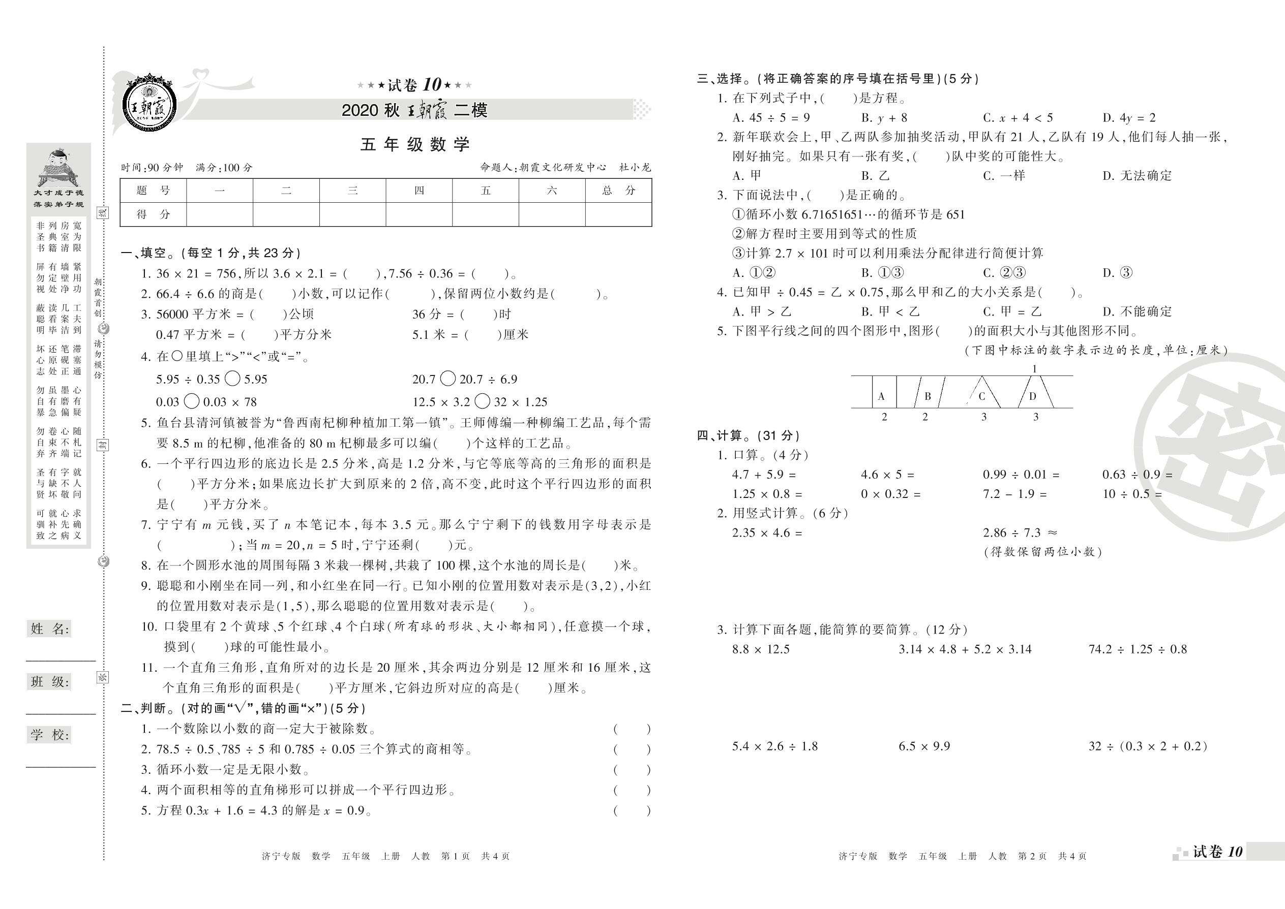 王朝霞期末模拟卷五年级上册数学(人教版)_R210804164650【10】