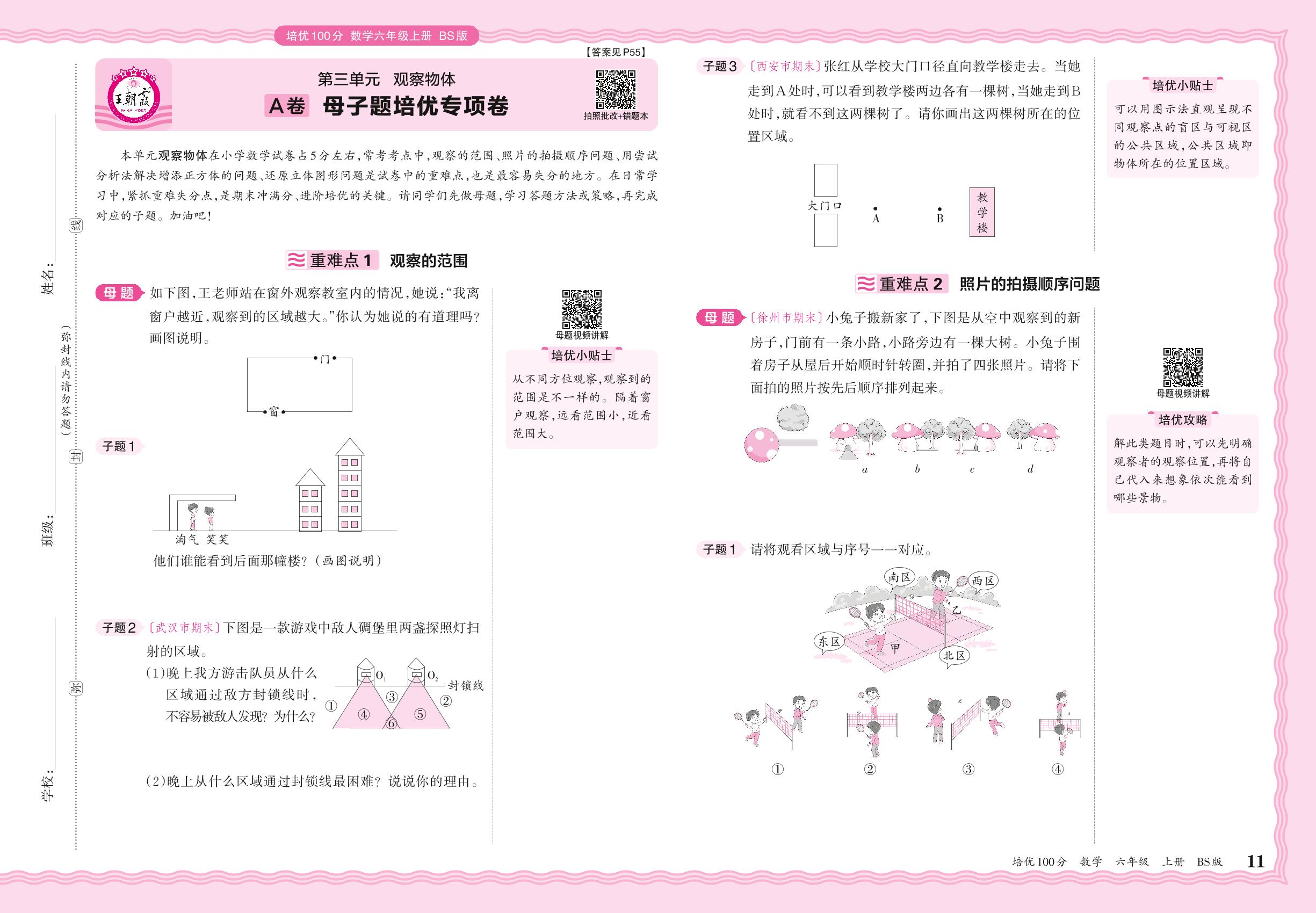 2024秋上册六年级数学北师版 第三单元A卷 母子题培优专项卷