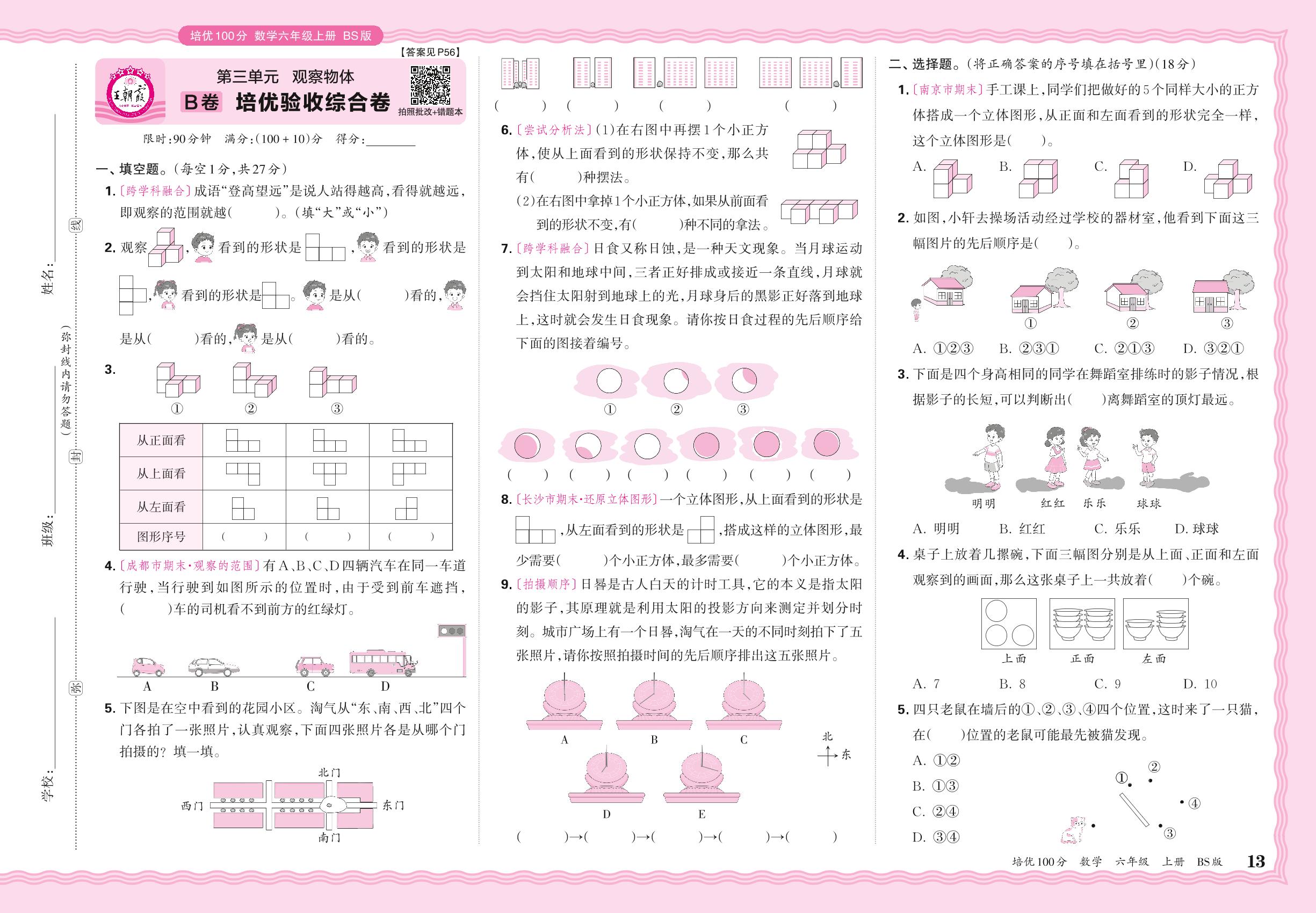 2024秋上册六年级数学北师版 第三单元B卷 培优验收综合卷