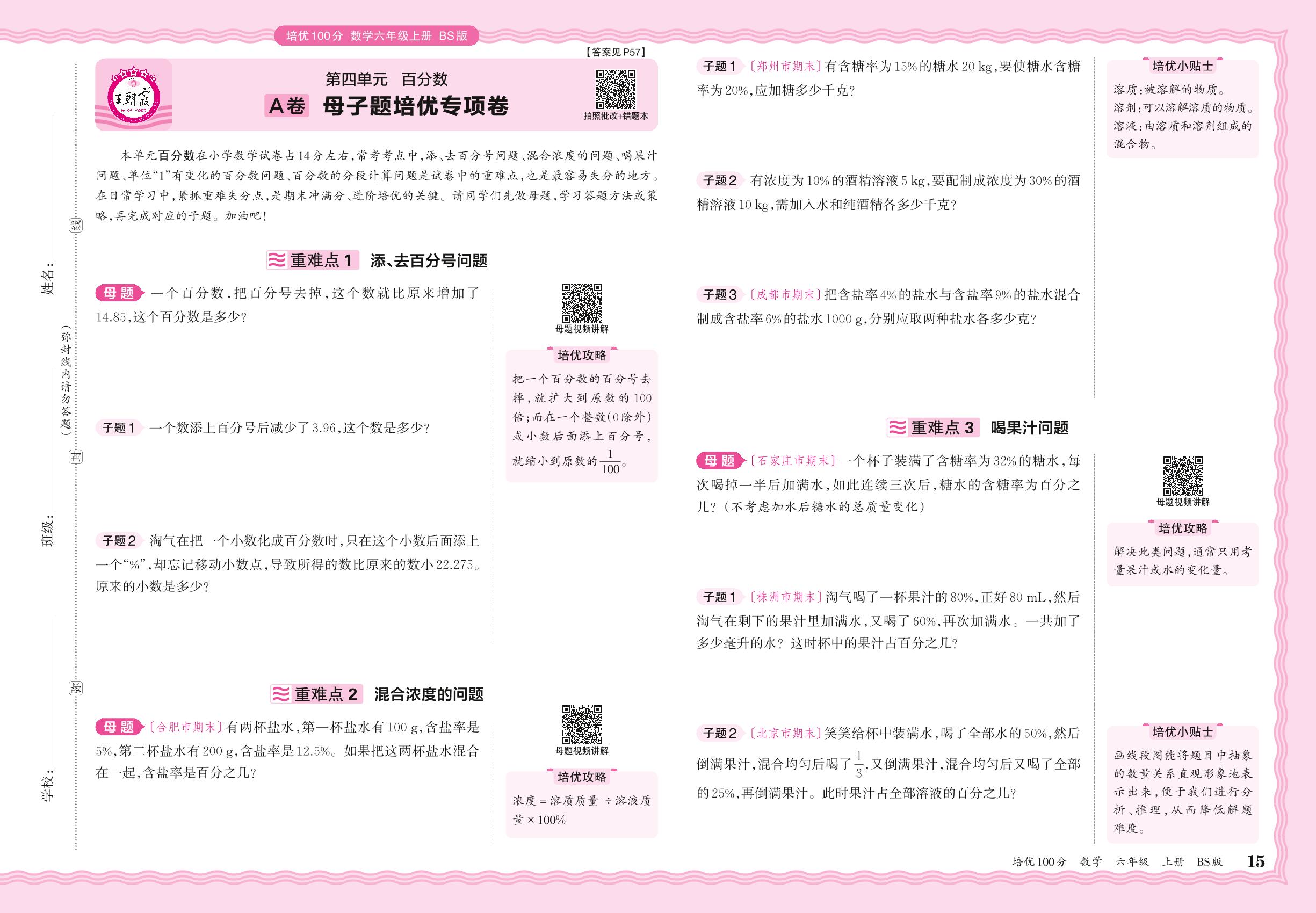 2024秋上册六年级数学北师版 第四单元A卷 母子题培优专项卷