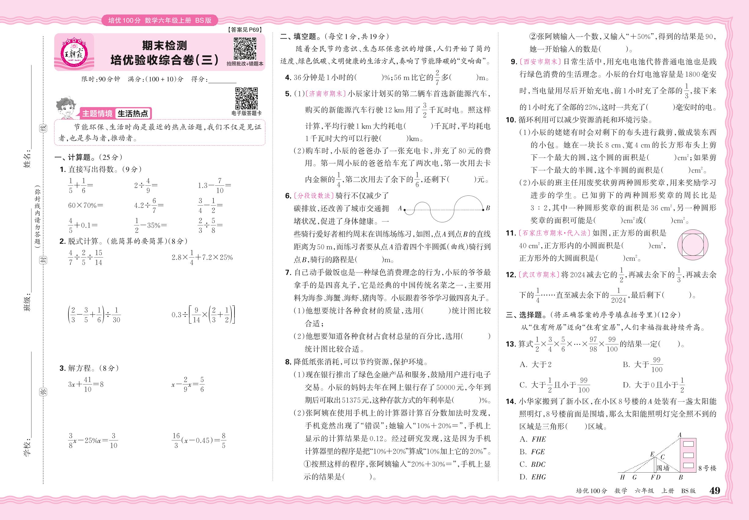 2024秋上册六年级数学北师版 期末检测 培优验收综合卷(三)