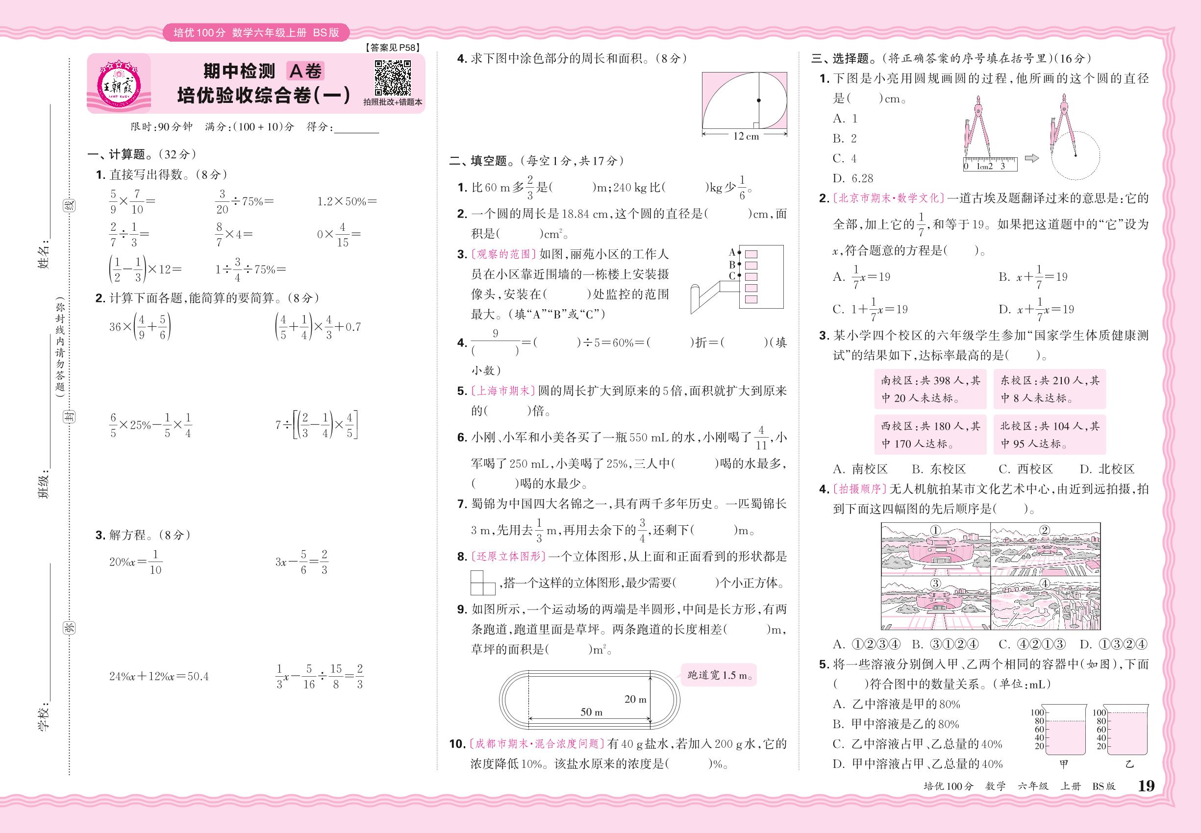 2024秋上册六年级数学北师版 期中检测A卷 培优验收综合卷(一)