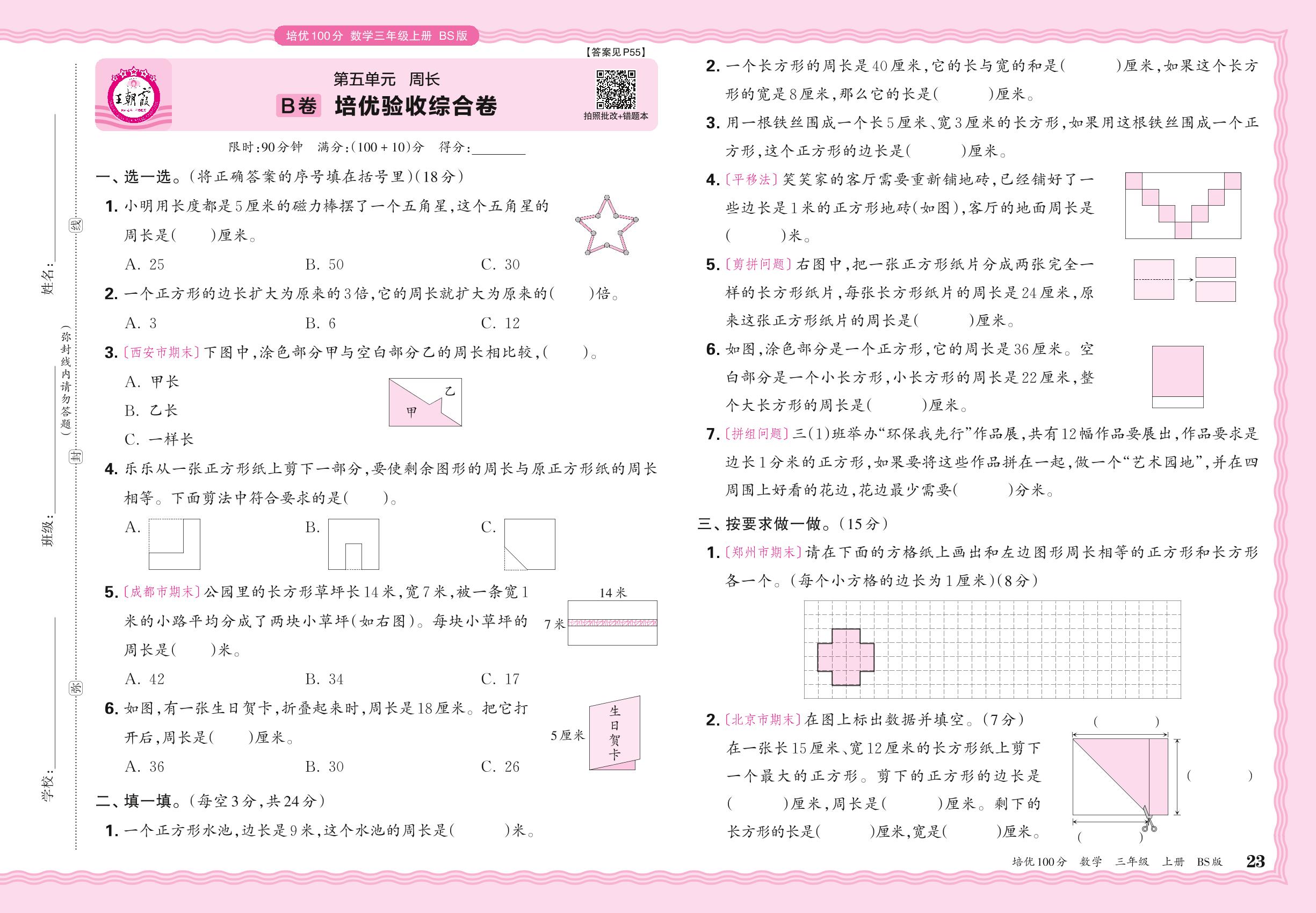 2024秋上册三年级数学北师版 第五单元B卷 培优验收综合卷