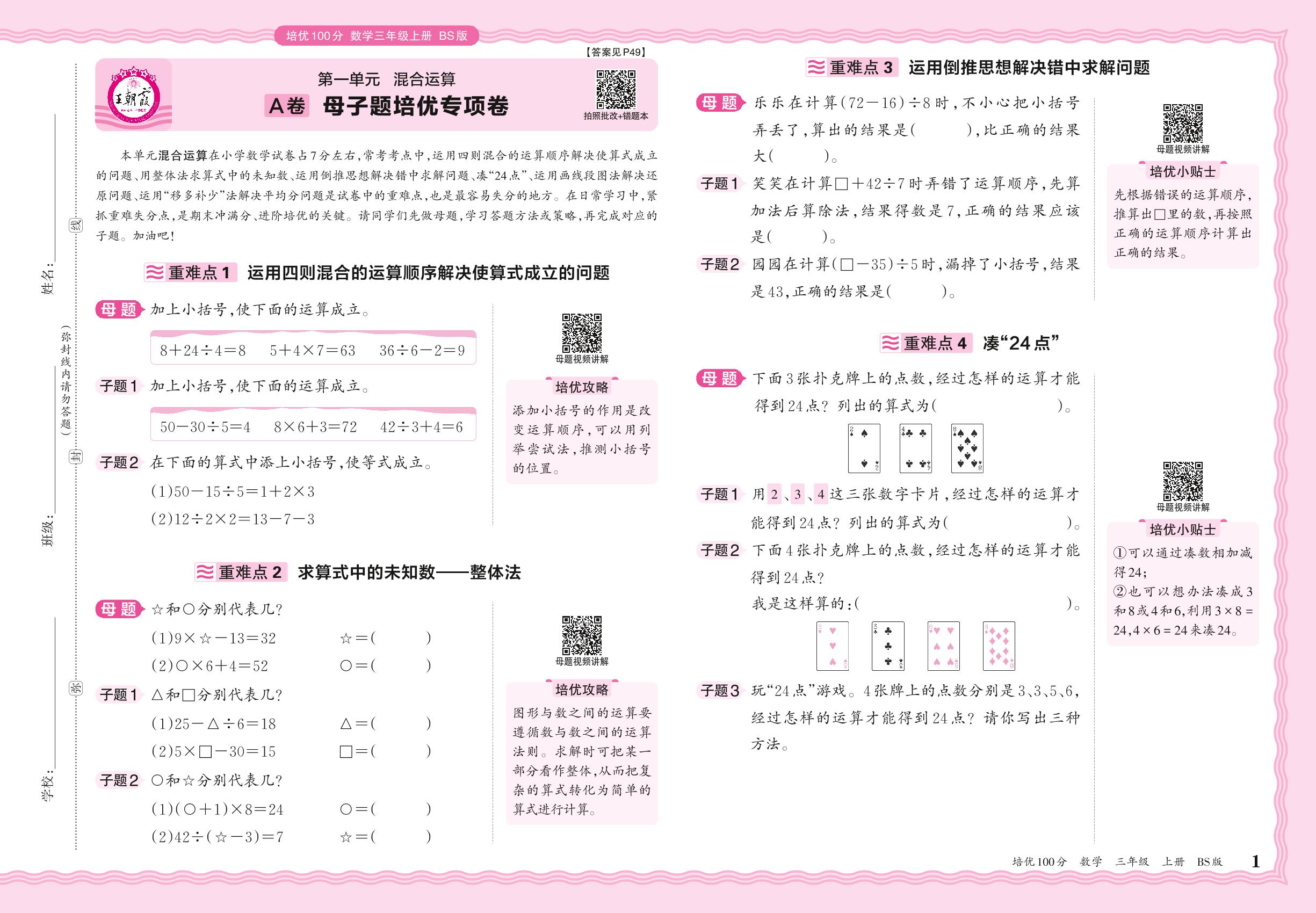 2024秋上册三年级数学北师版 第一单元A卷 母子题培优专项卷