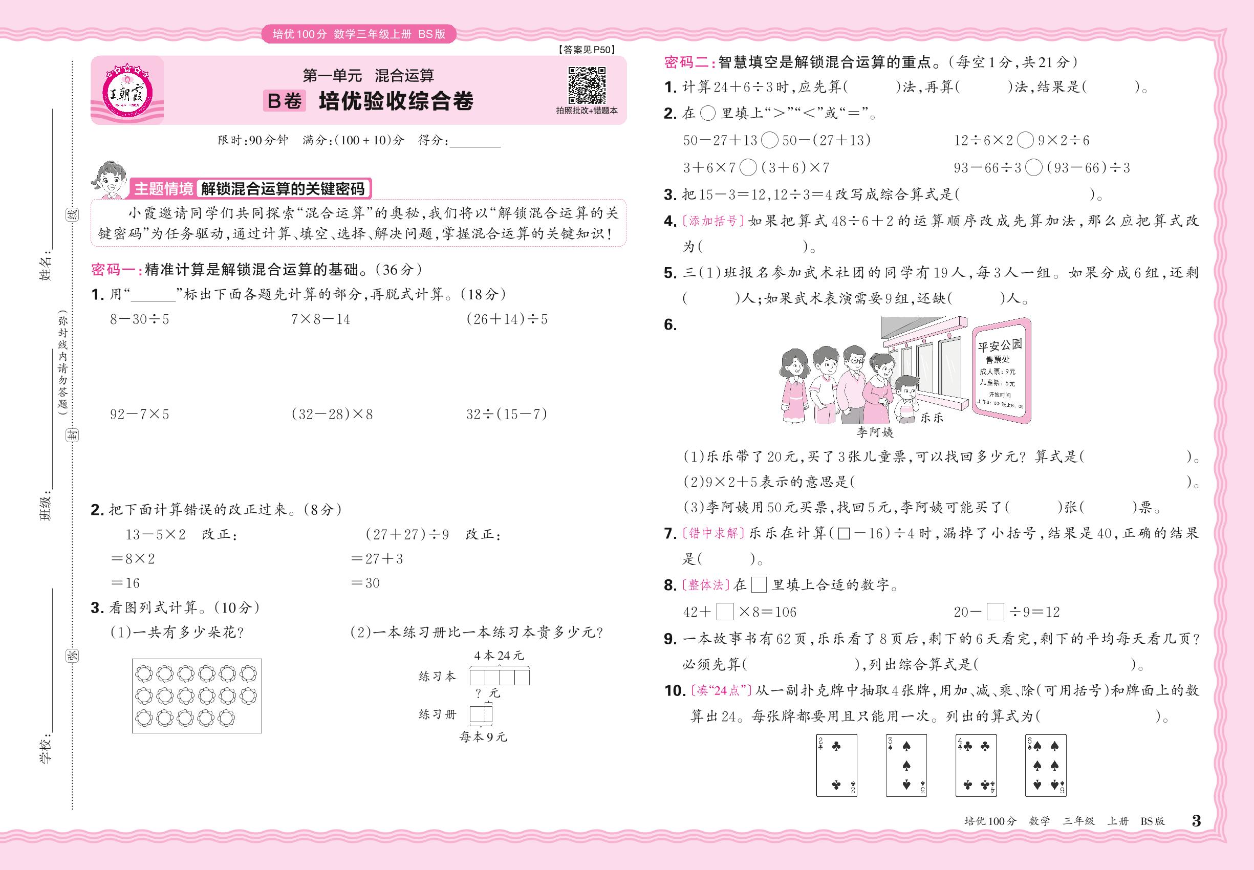 2024秋上册三年级数学北师版 第一单元B卷 培优验收综合卷
