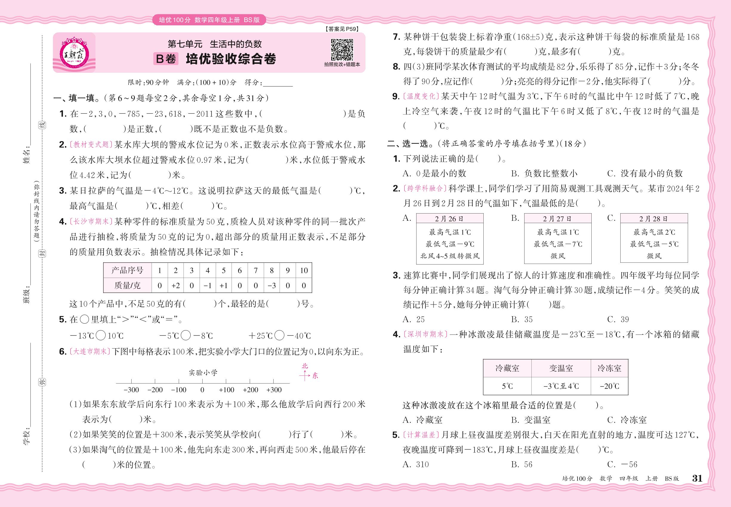 2024秋上册四年级数学北师版 第七单元B卷 培优验收综合卷