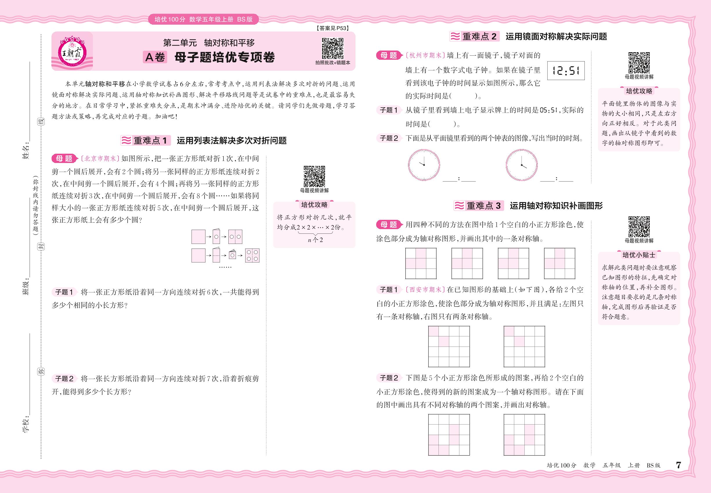 2024秋上册五年级数学北师版 第二单元A卷 母子题培优专项卷