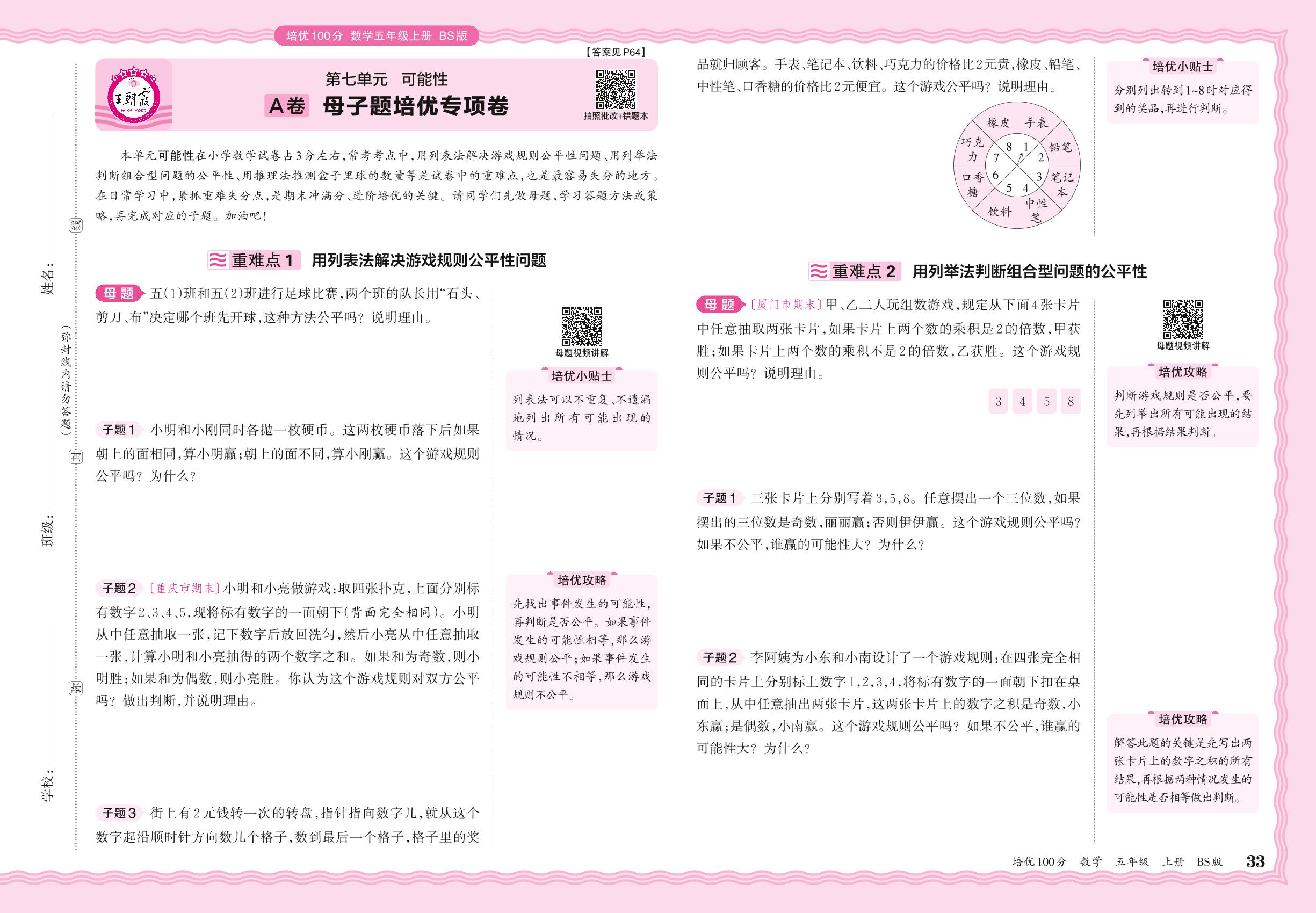 2024秋上册五年级数学北师版 第七单元A卷 母子题培优专项卷