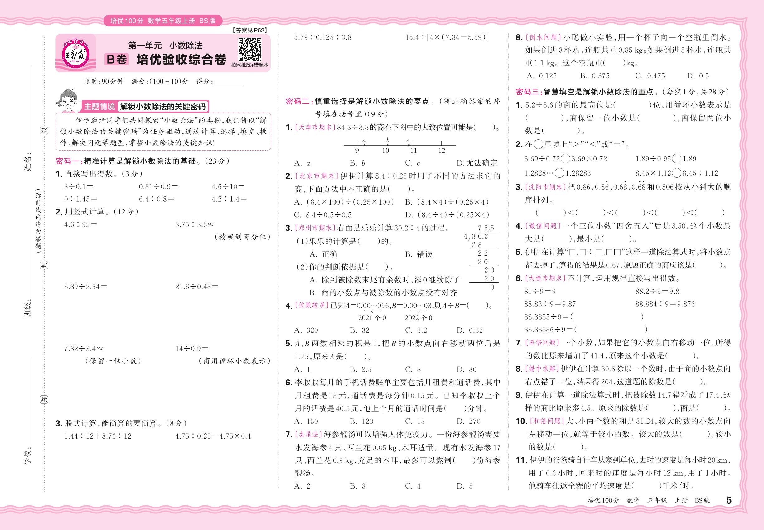 2024秋上册五年级数学北师版 第一单元B卷 培优验收综合卷