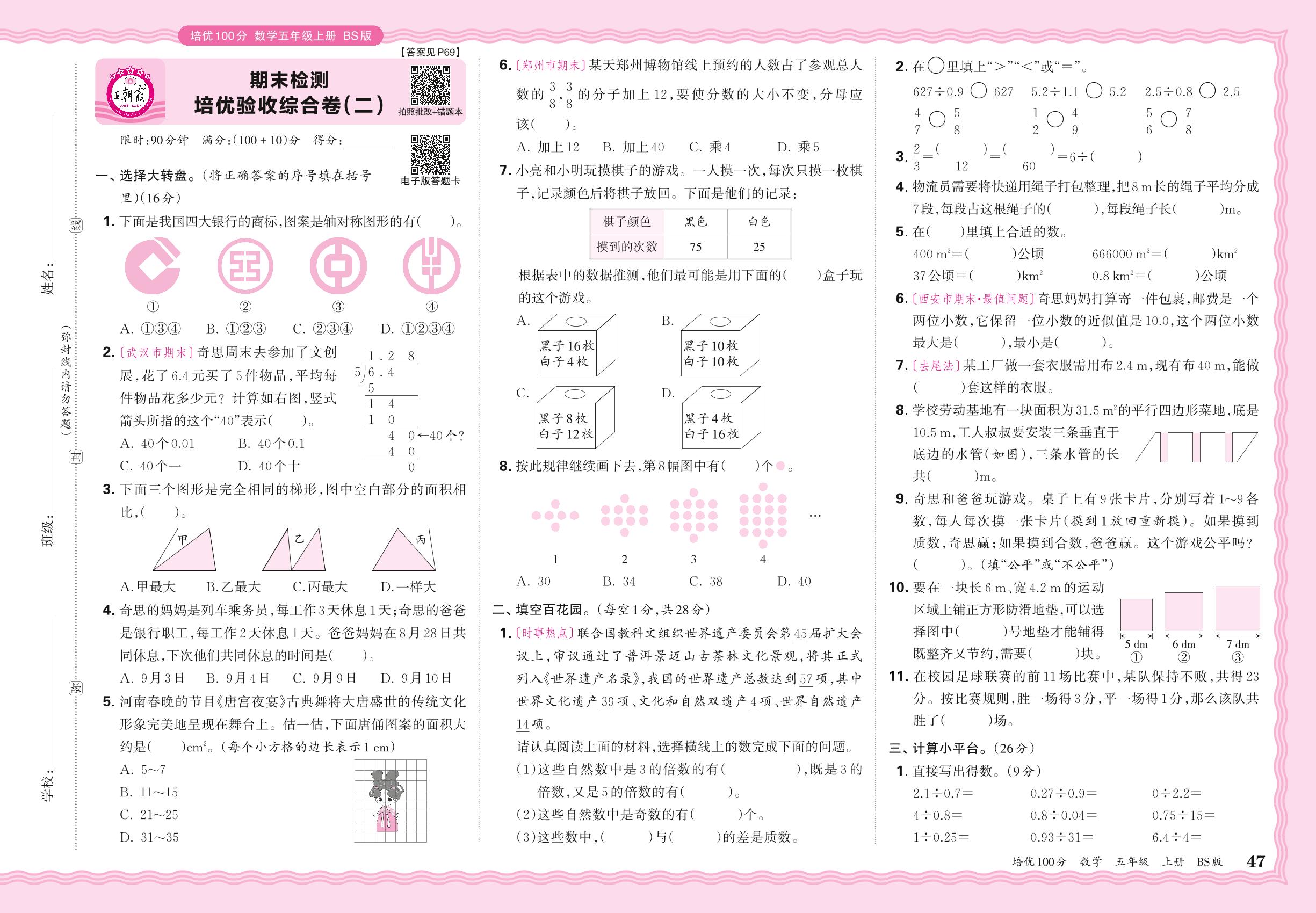2024秋上册五年级数学北师版 期末检测 培优验收综合卷(二)