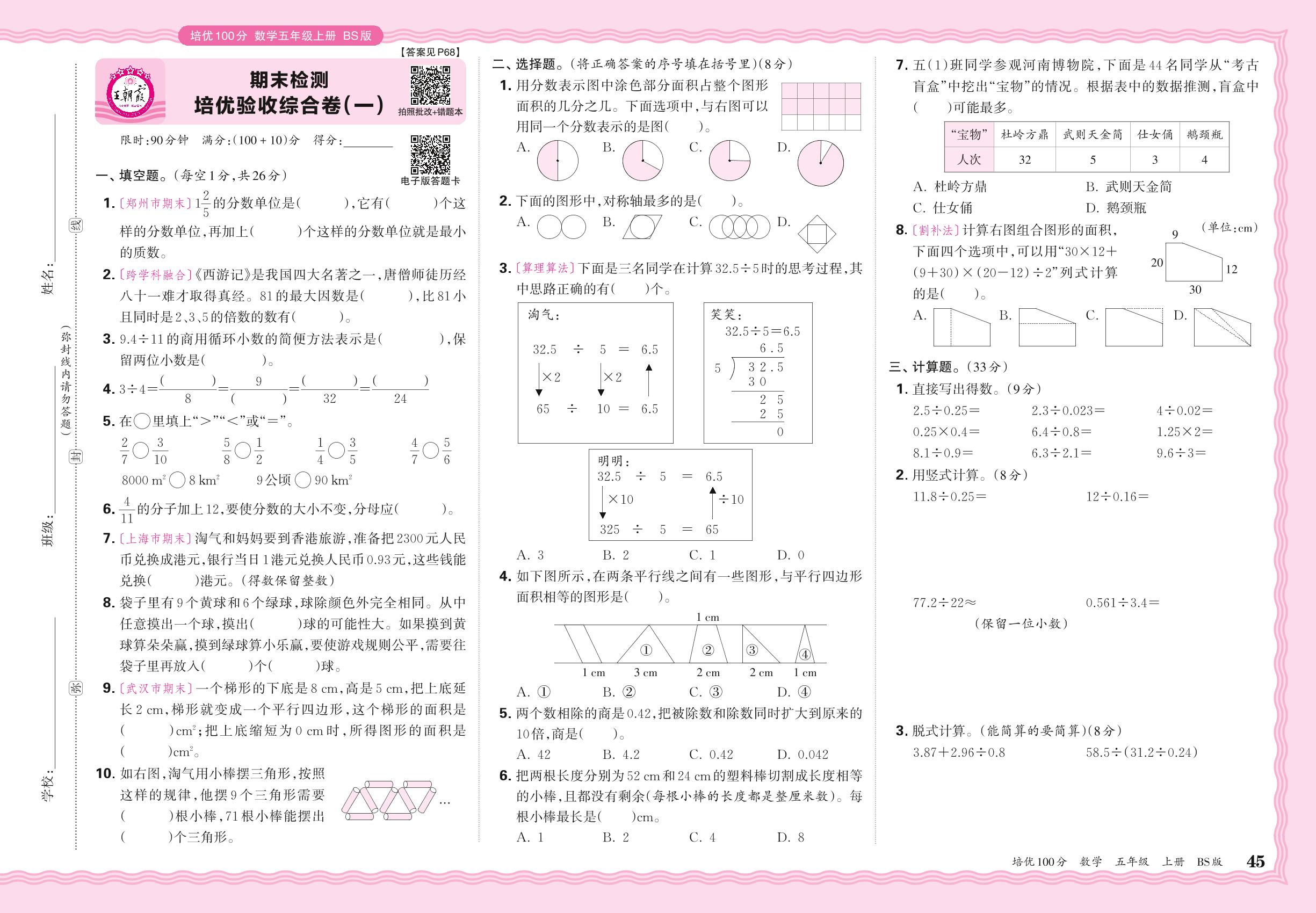 2024秋上册五年级数学北师版 期末检测 培优验收综合卷(一)