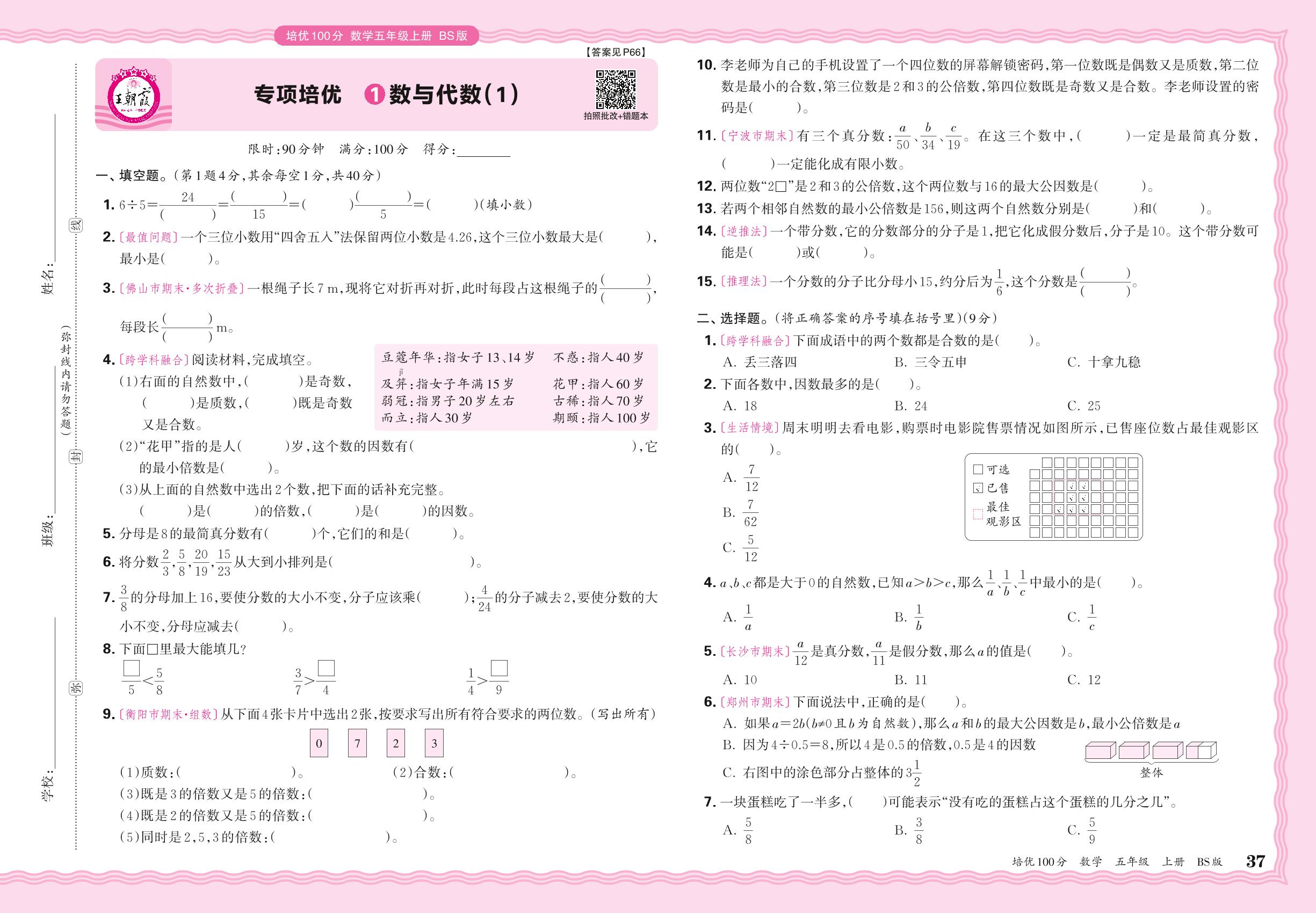 2024秋上册五年级数学北师版 期末专项卷PY版·数与代数(1)【1】