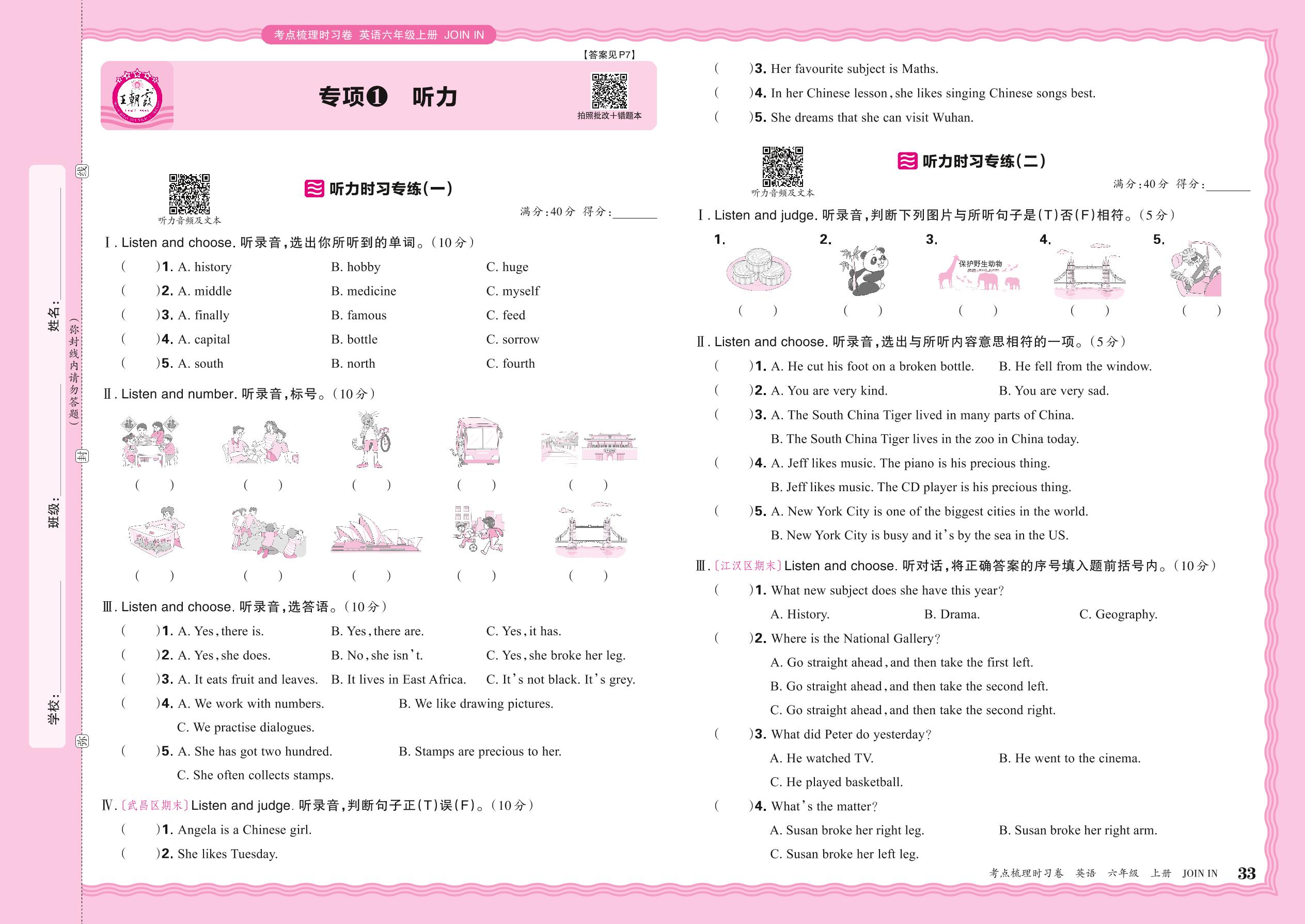2024秋上册六年级英语剑桥版 期末专项卷PY版·听力【1】