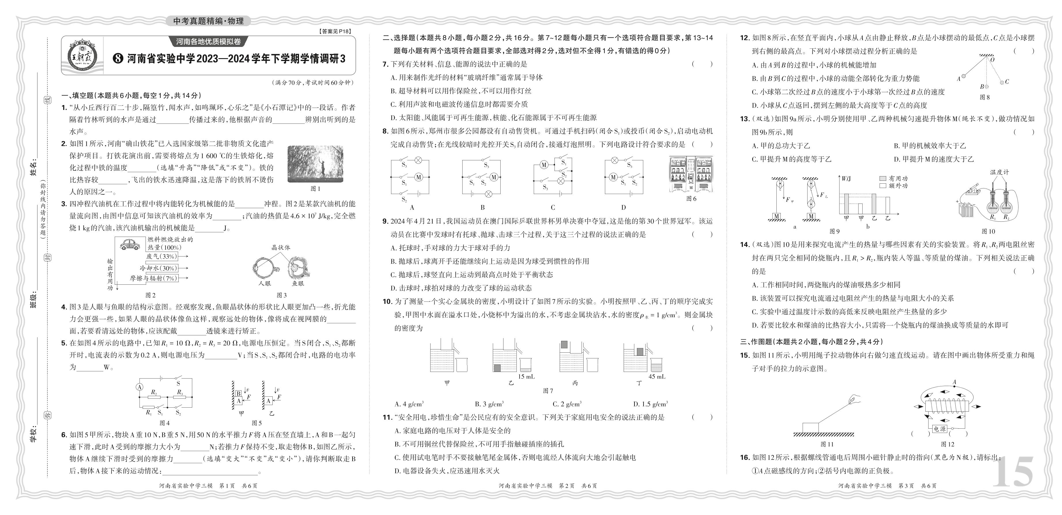 中考物理·河南省实验中学2023—2024学年下学期学情调研3【8】