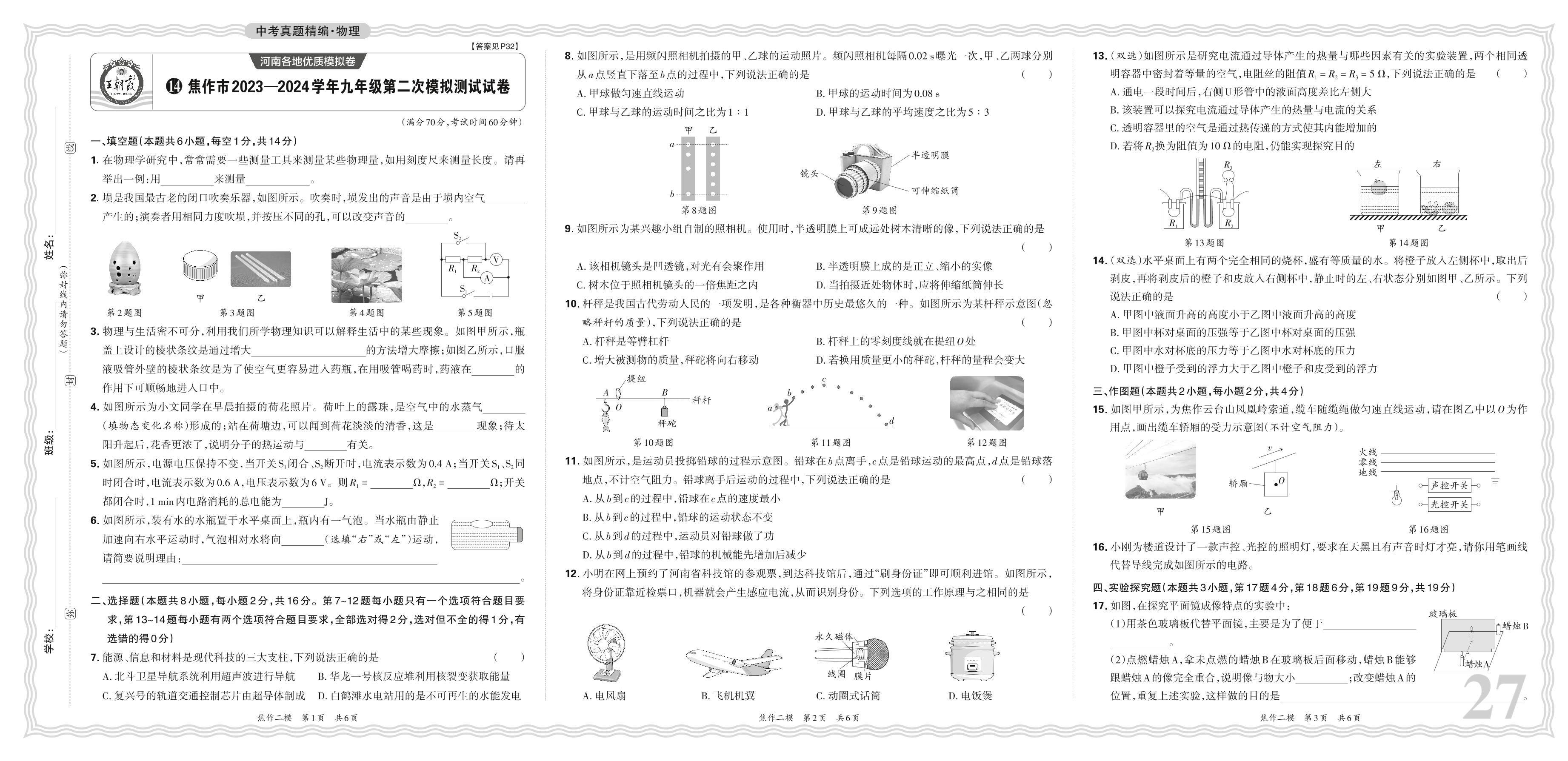 中考物理·河南省焦作市2023—2024学年九年级第二次模拟测试试卷【14】
