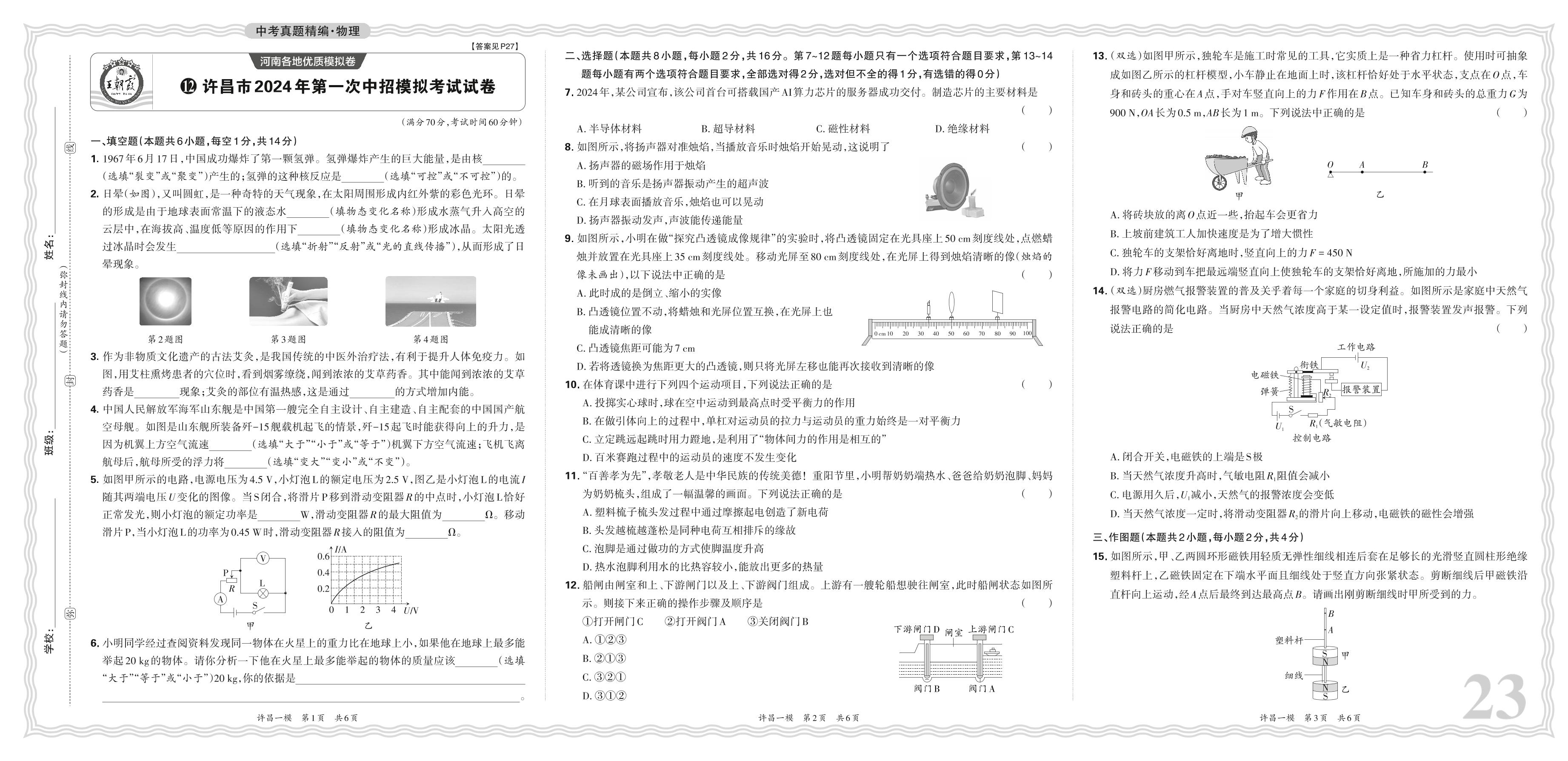 中考物理·河南省许昌市2024年第一次中招模拟考试试卷【12】