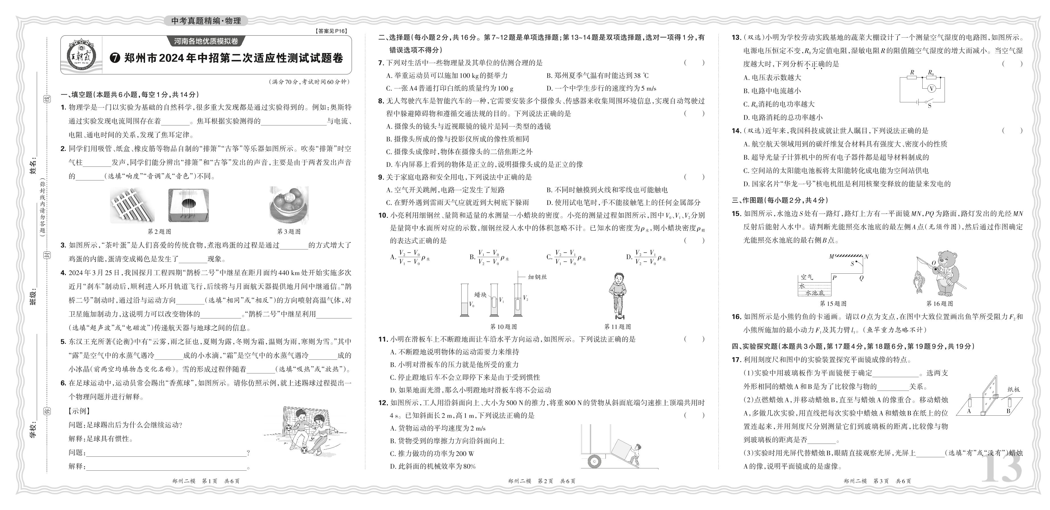 中考物理·河南省郑州市2024年中招第二次适应性测试试题卷【7】