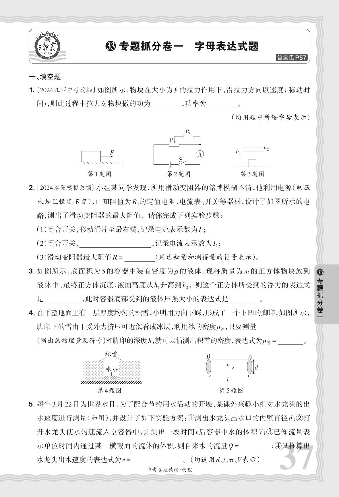 2025河南中考物理·专题抓分卷一 字母表达式题【33】