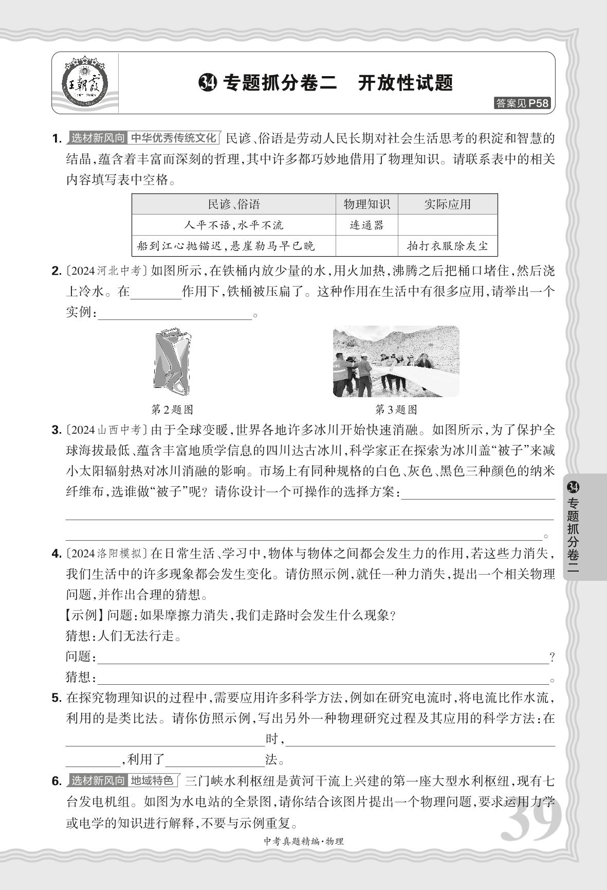 2025河南中考物理·专题抓分卷二 开放性试题【34】