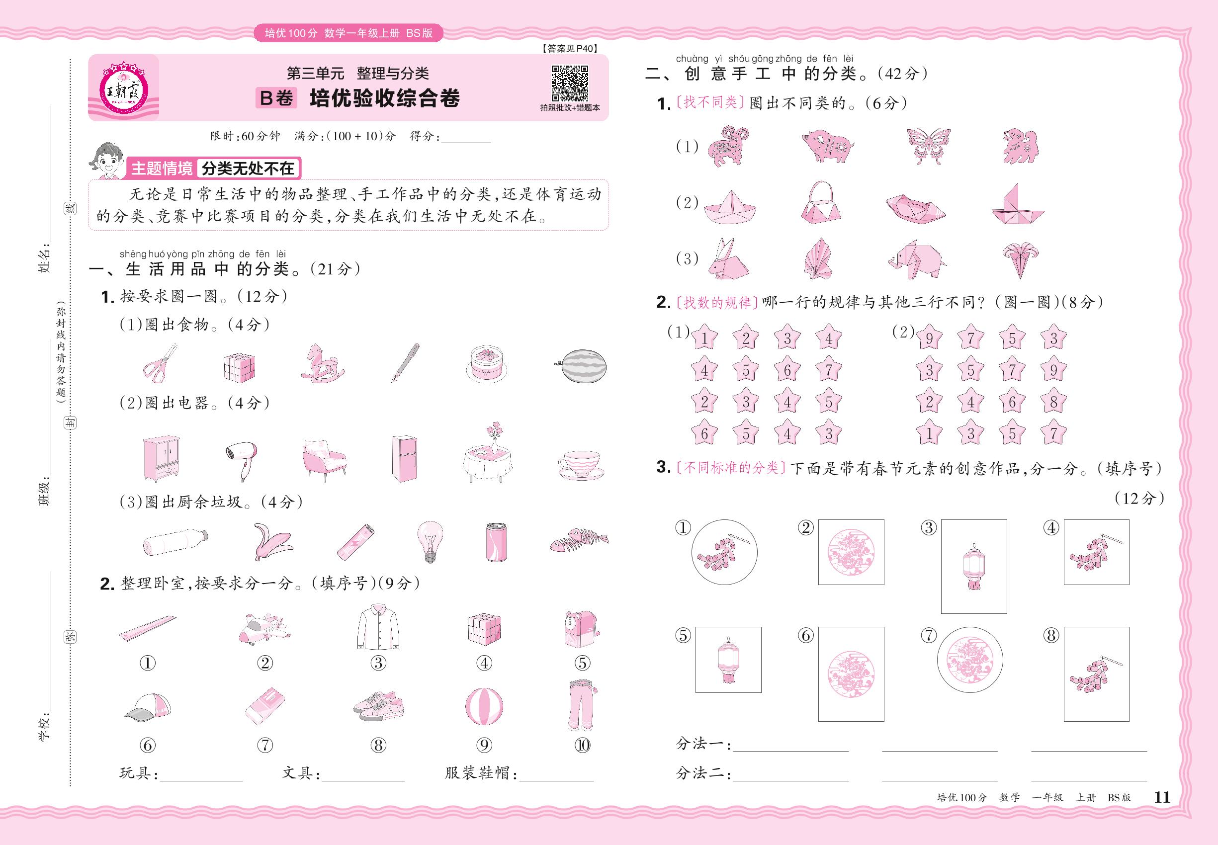 2024秋上册一年级数学北师版 第三单元B卷 培优验收综合卷