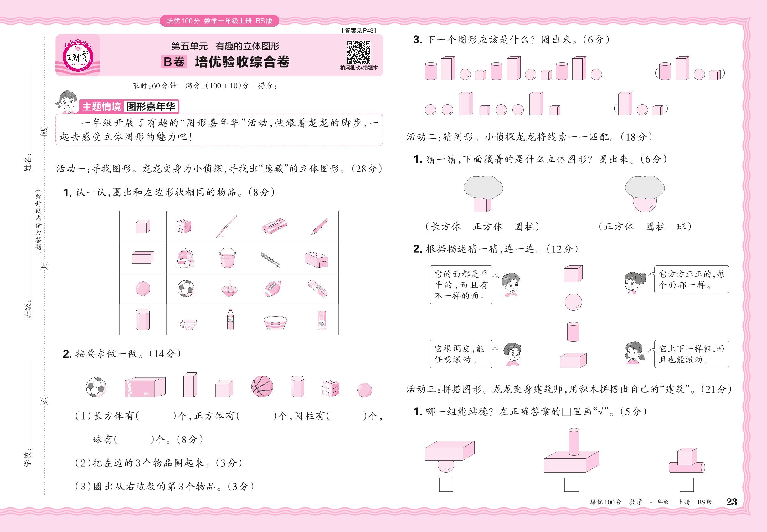 2024秋上册一年级数学北师版 第五单元B卷 培优验收综合卷