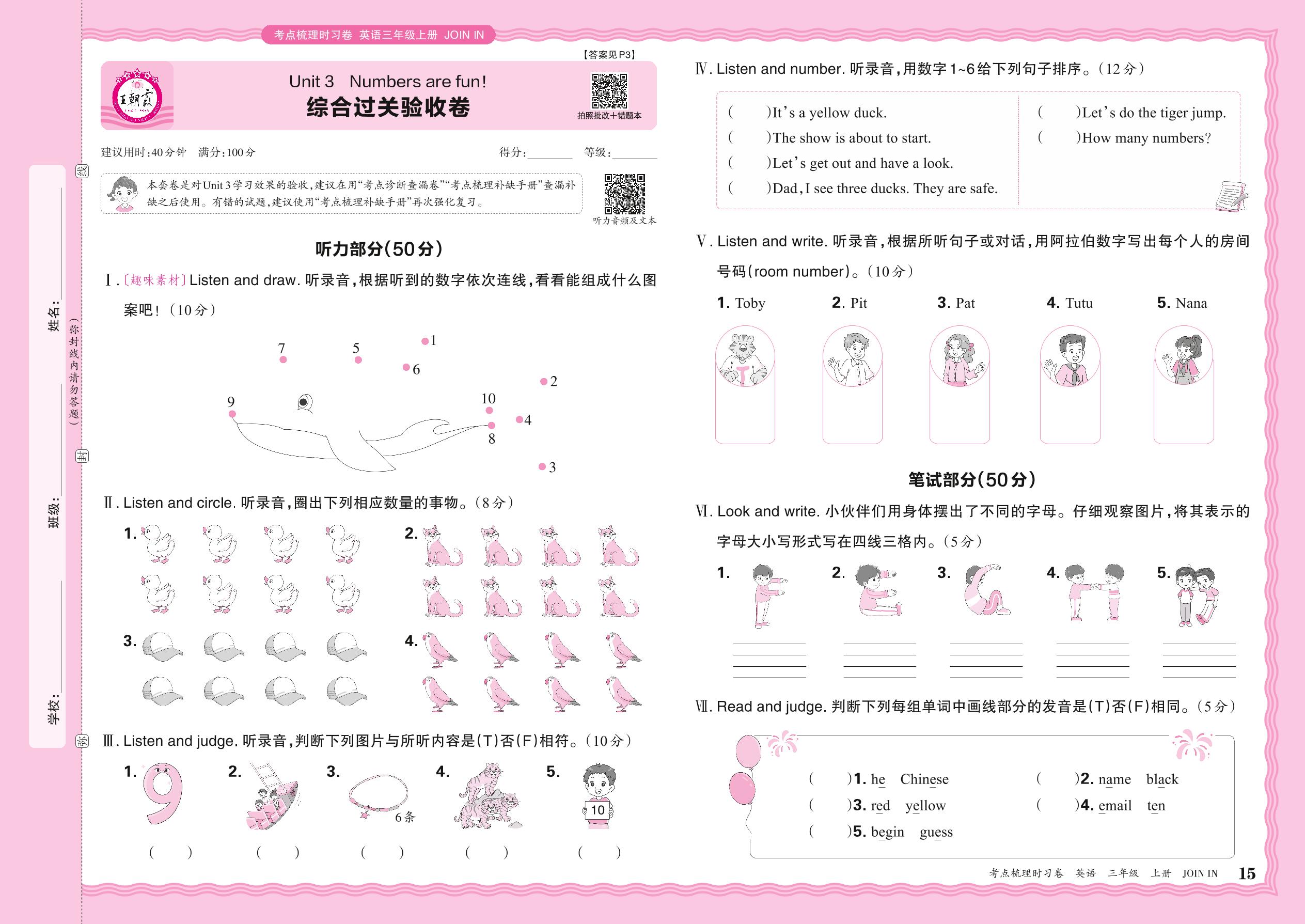 2024秋上册三年级英语剑桥版 Unit 3 综合过关验收卷