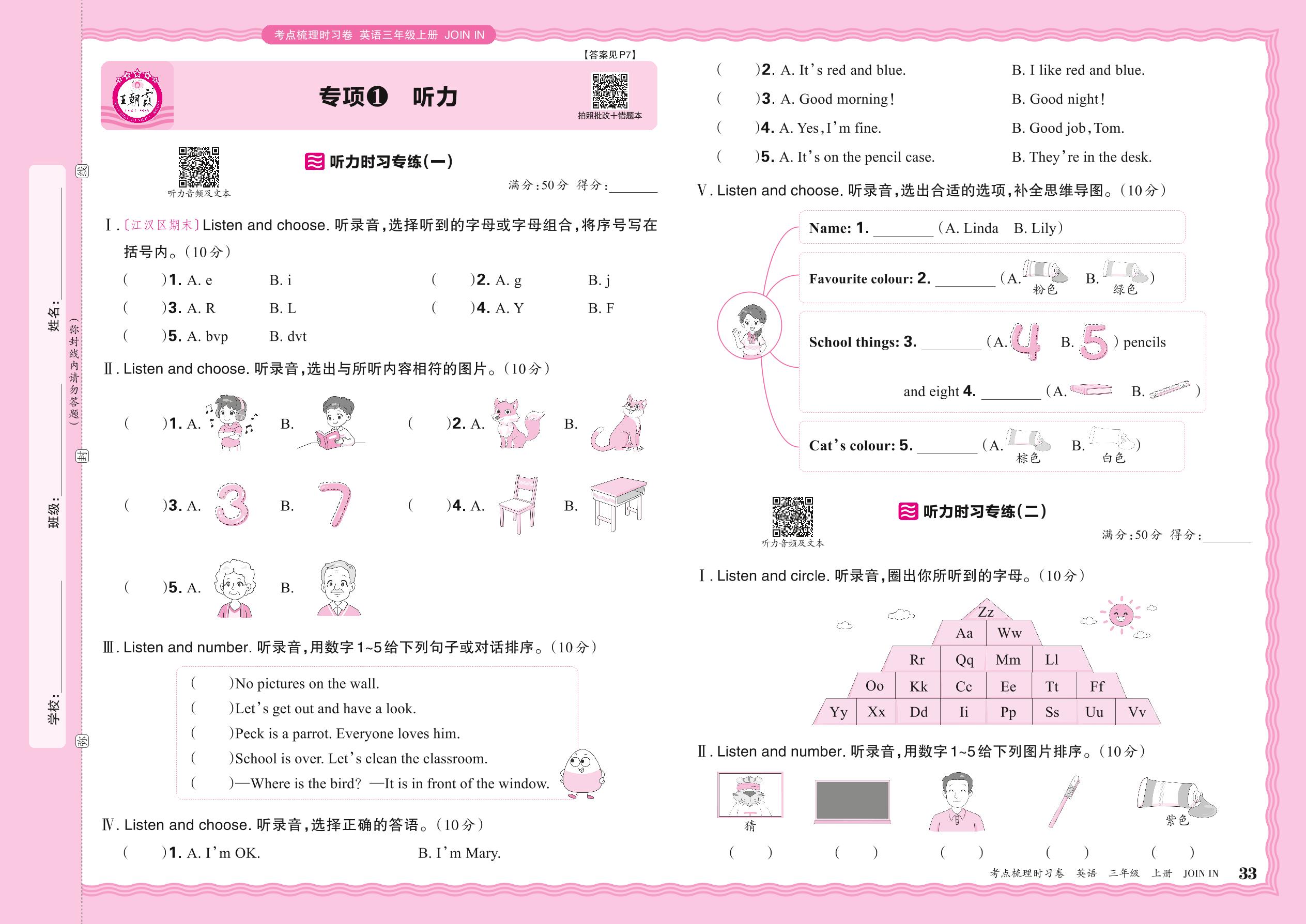 2024秋上册三年级英语剑桥版 期末专项卷PY版·听力【1】
