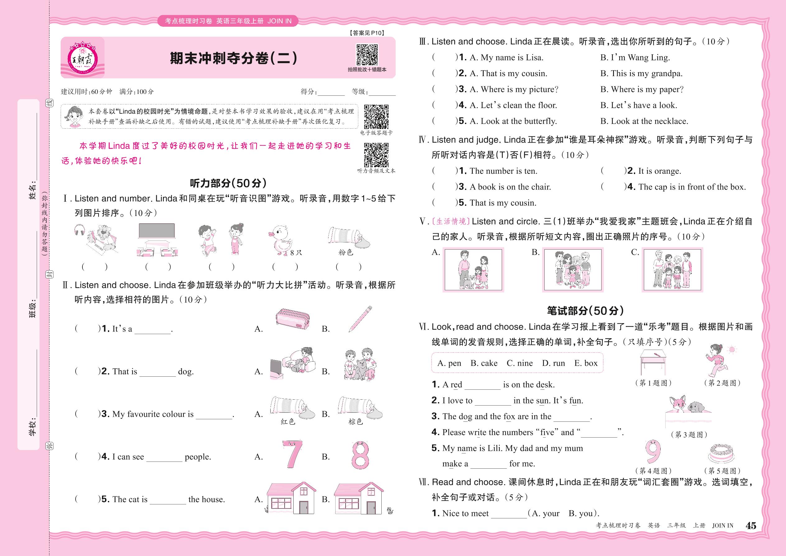 2024秋上册三年级英语剑桥版 期末冲刺夺分卷(二)