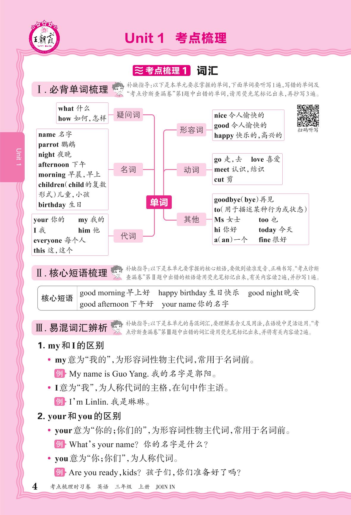 2024秋上册三年级英语剑桥版 考点梳理补缺手册——Unit 1