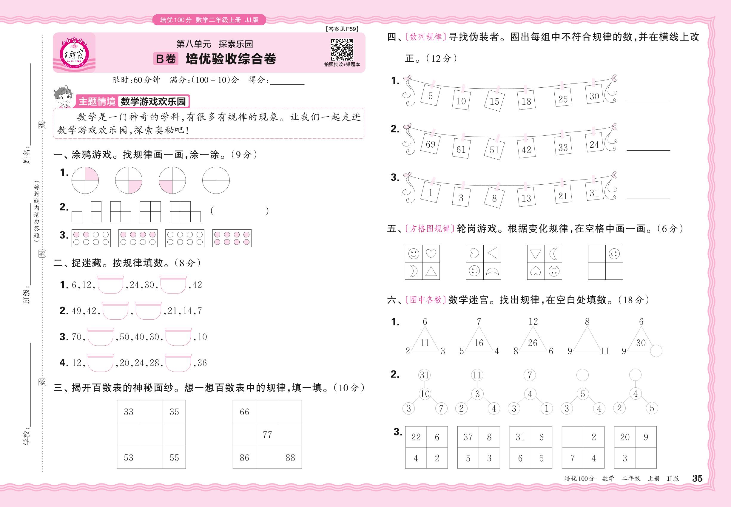 2024秋上册二年级数学冀教版 第八单元B卷 培优验收综合卷