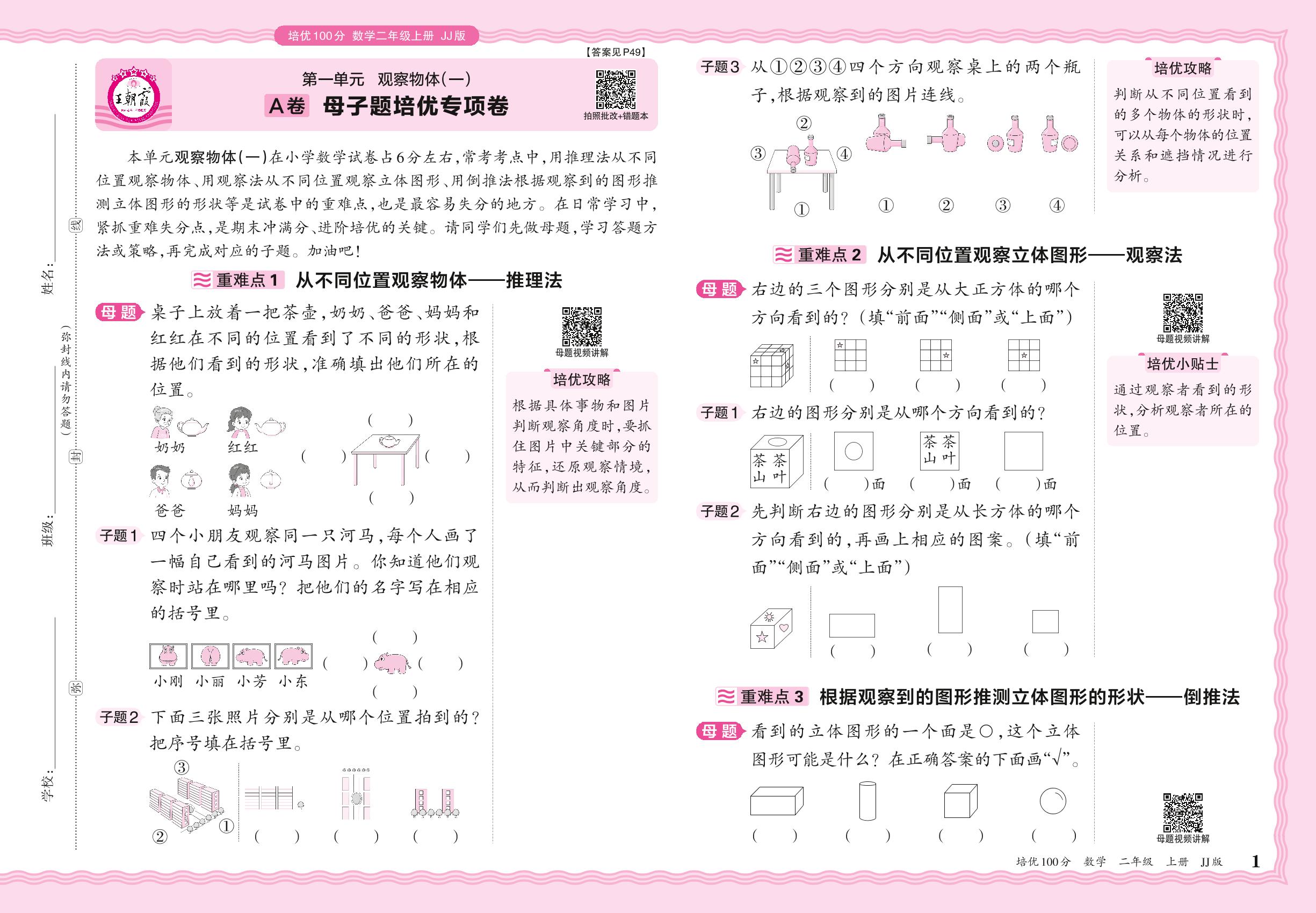 2024秋上册二年级数学冀教版 第一单元A卷 母子题培优专项卷