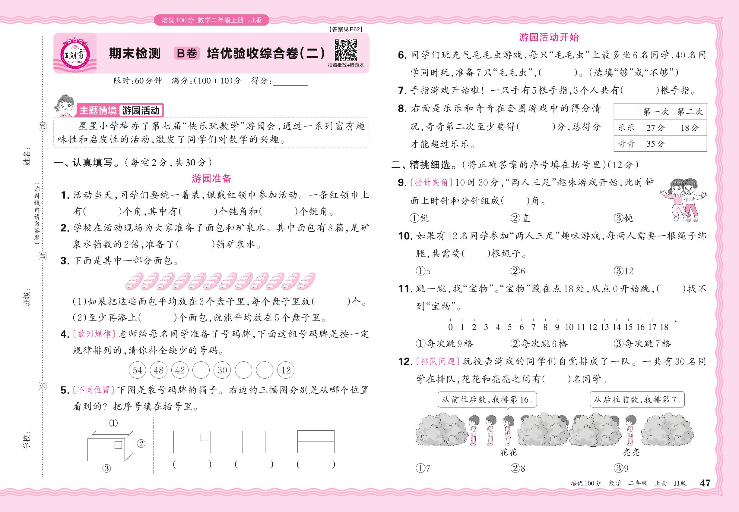 2024秋上册二年级数学冀教版 期末检测B卷 培优验收综合卷(二)