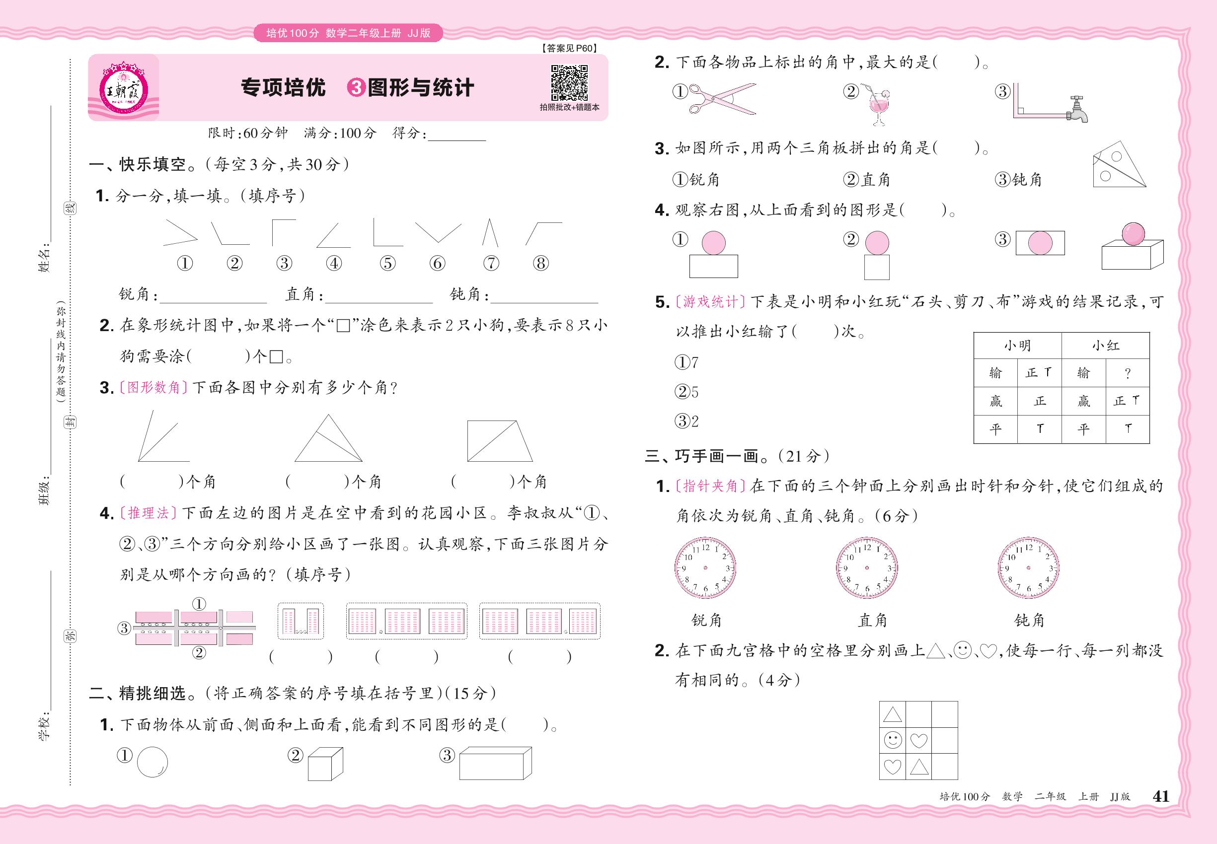 2024秋上册二年级数学冀教版 期末专项卷PY版·图形与统计【3】