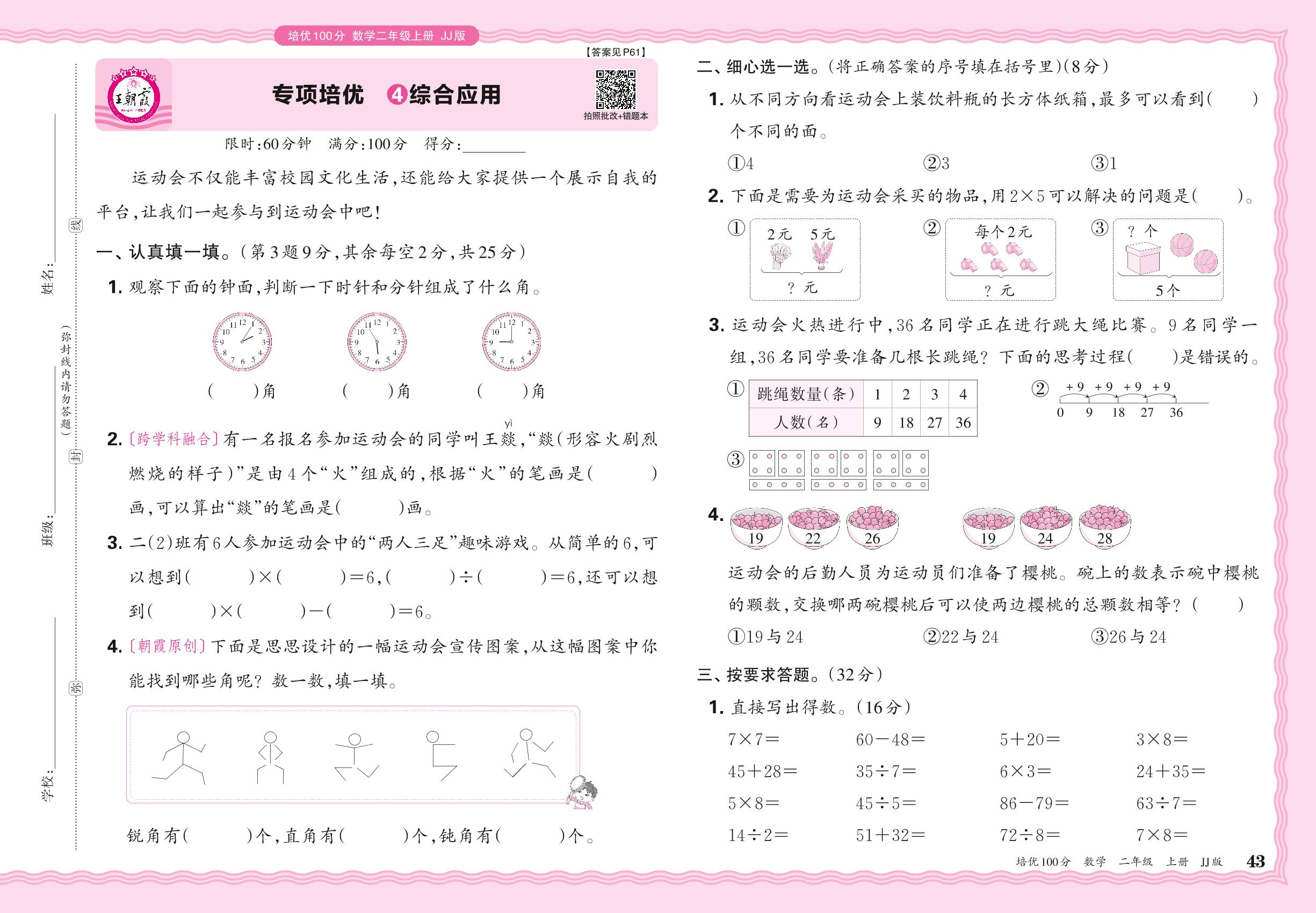 2024秋上册二年级数学冀教版 期末专项卷PY版·综合应用【4】