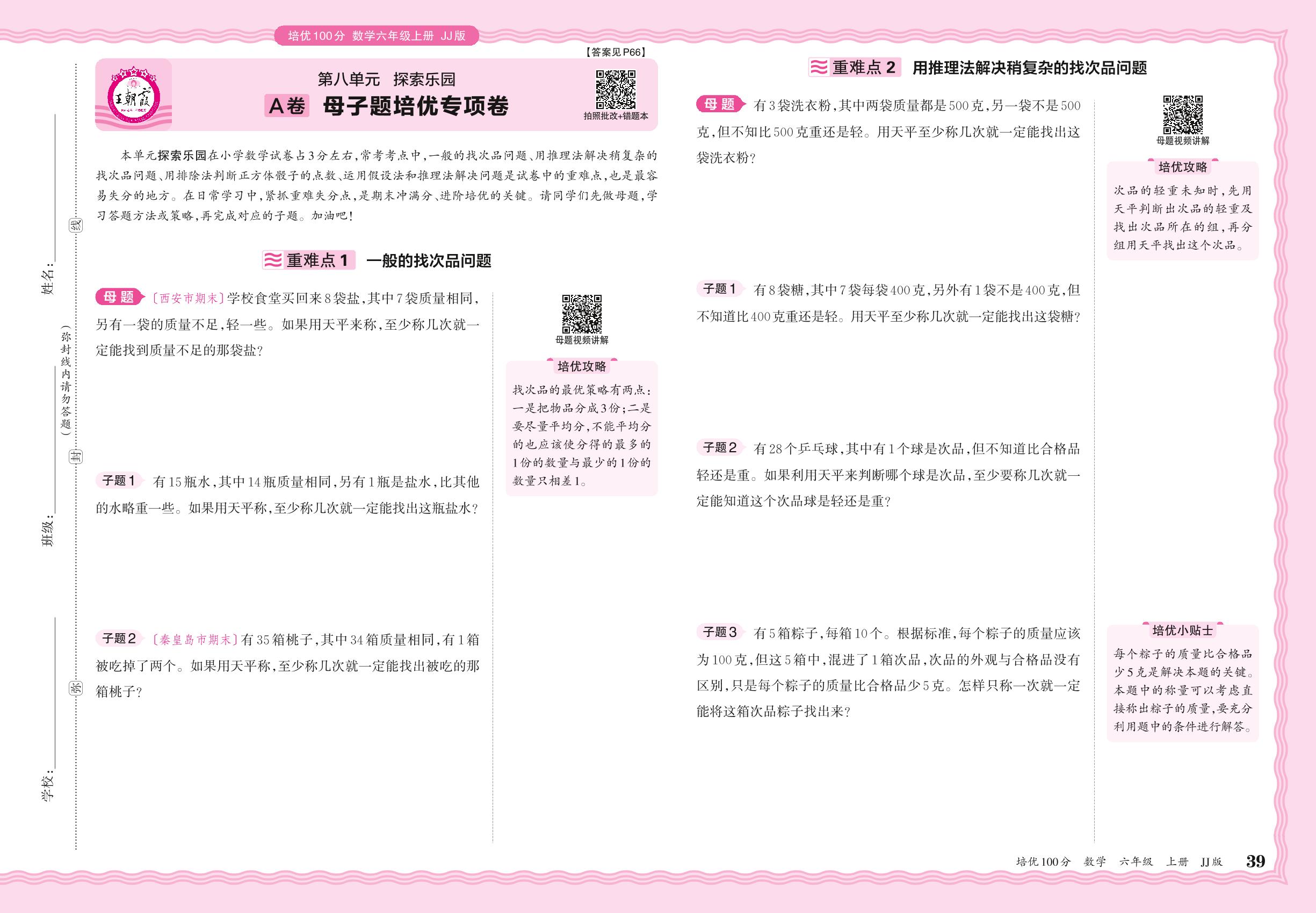 2024秋上册六年级数学冀教版 第八单元A卷 母子题培优专项卷