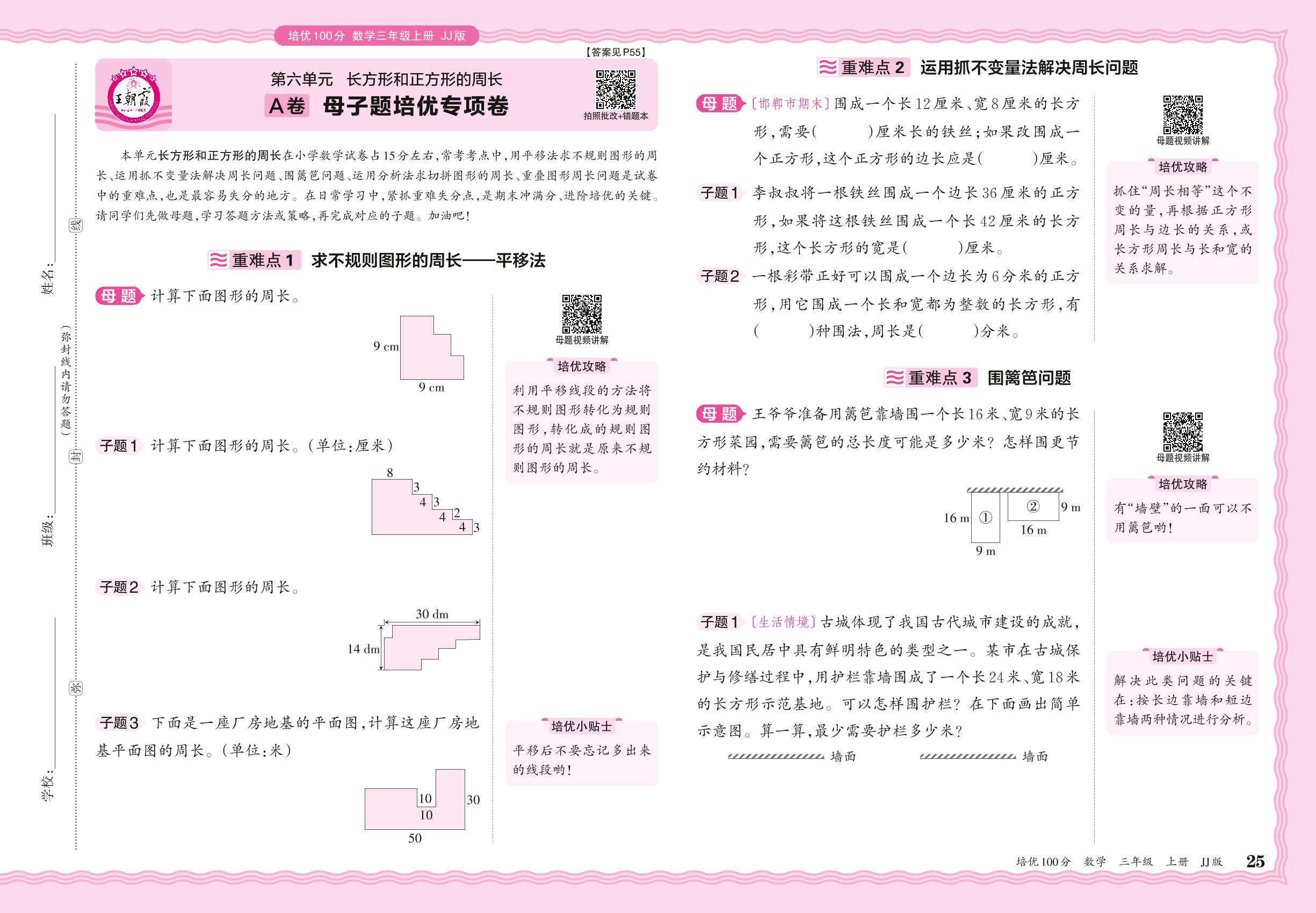 2024秋上册三年级数学冀教版 第六单元A卷 母子題培优专项卷