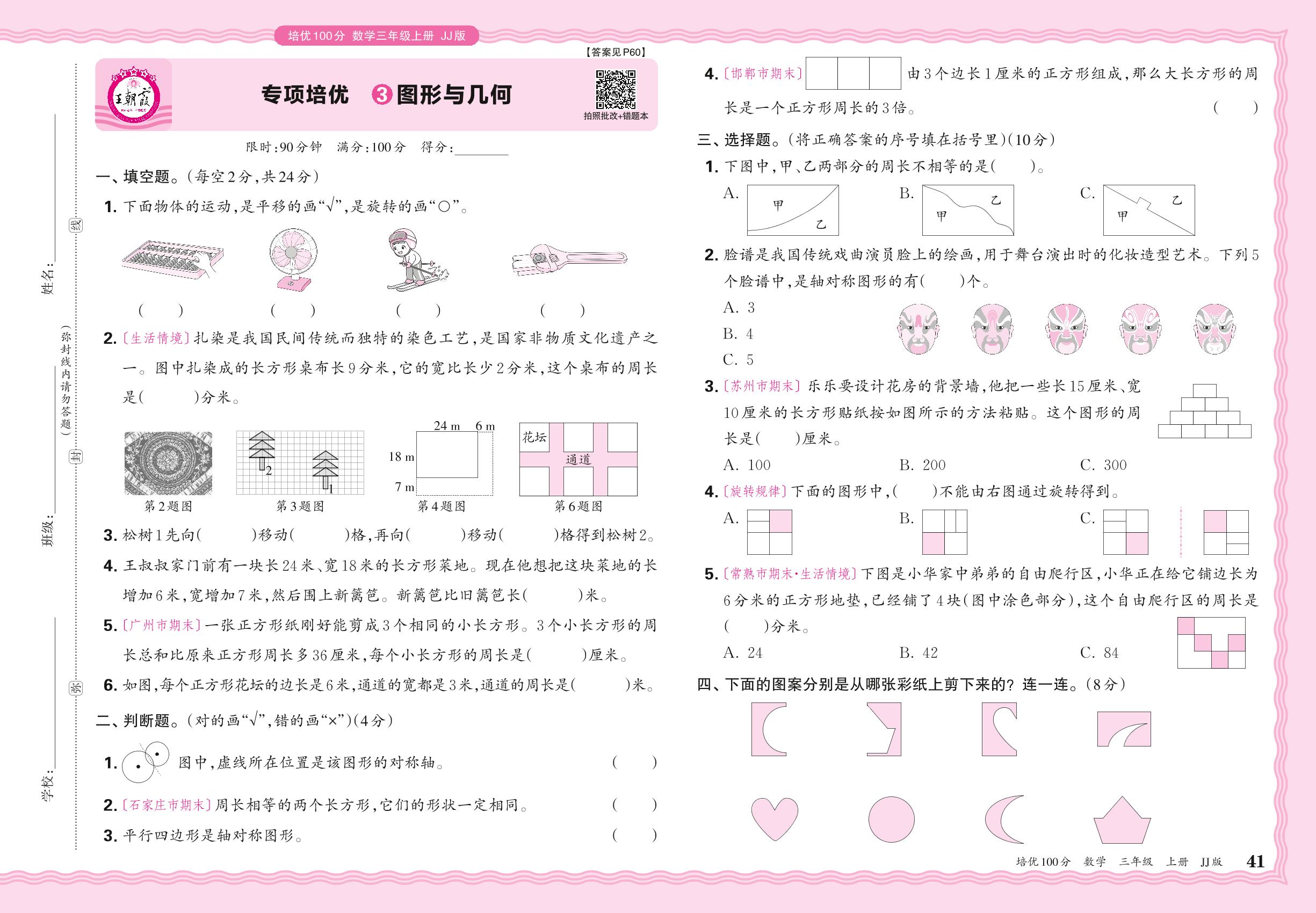 2024秋上册三年级数学冀教版 期末专项卷PY版·图形与几何【3】