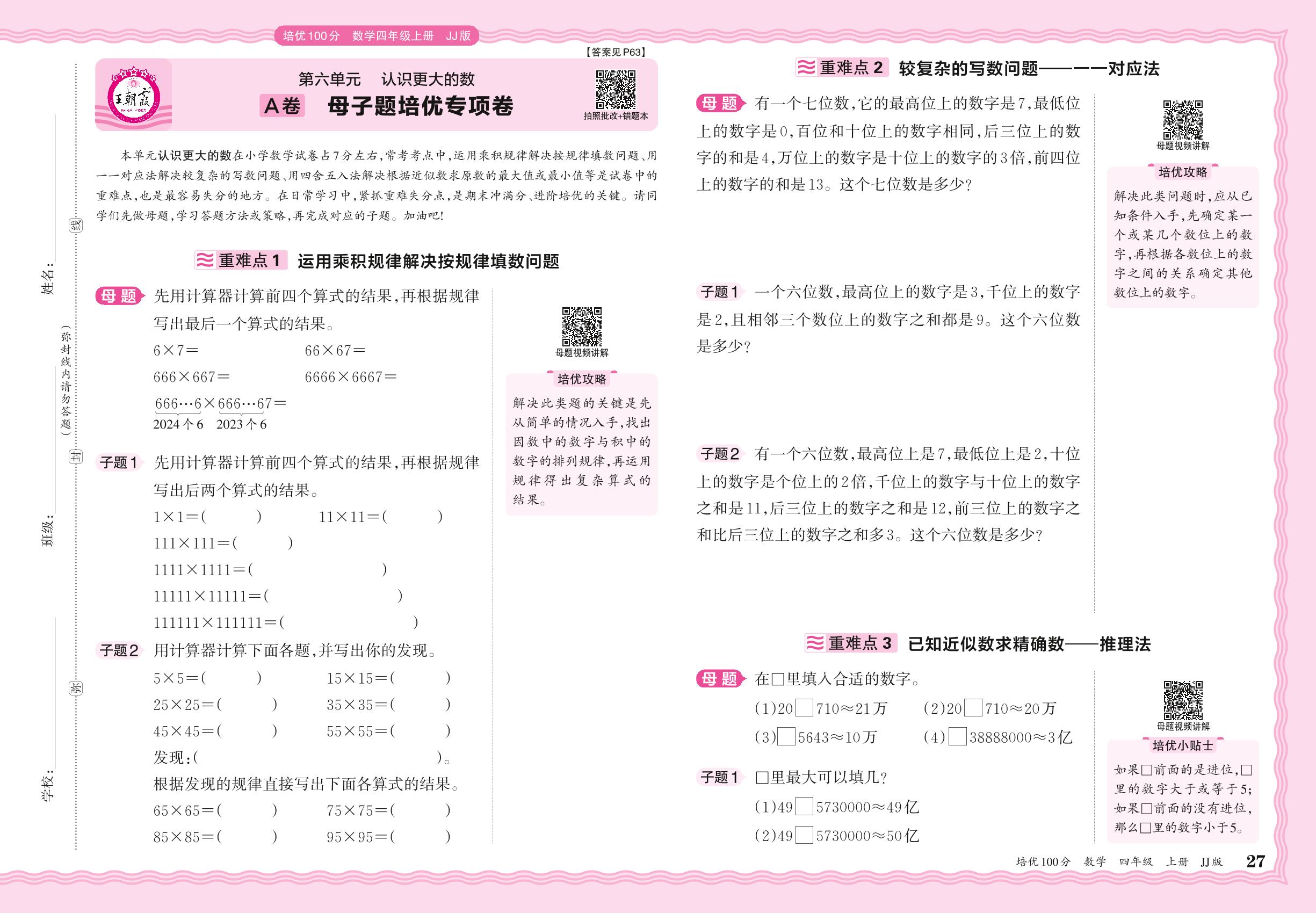 2024秋上册四年级数学冀教版 第六单元A卷 母子题培优专项卷