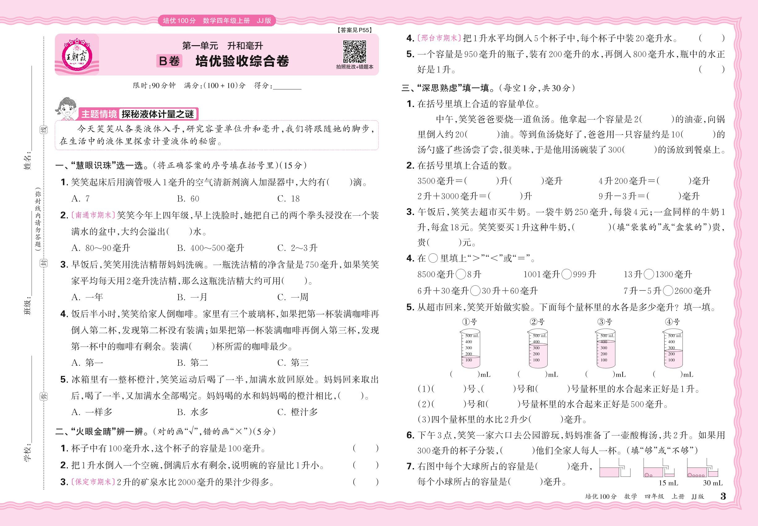 四年级数学冀教版上册单元卷