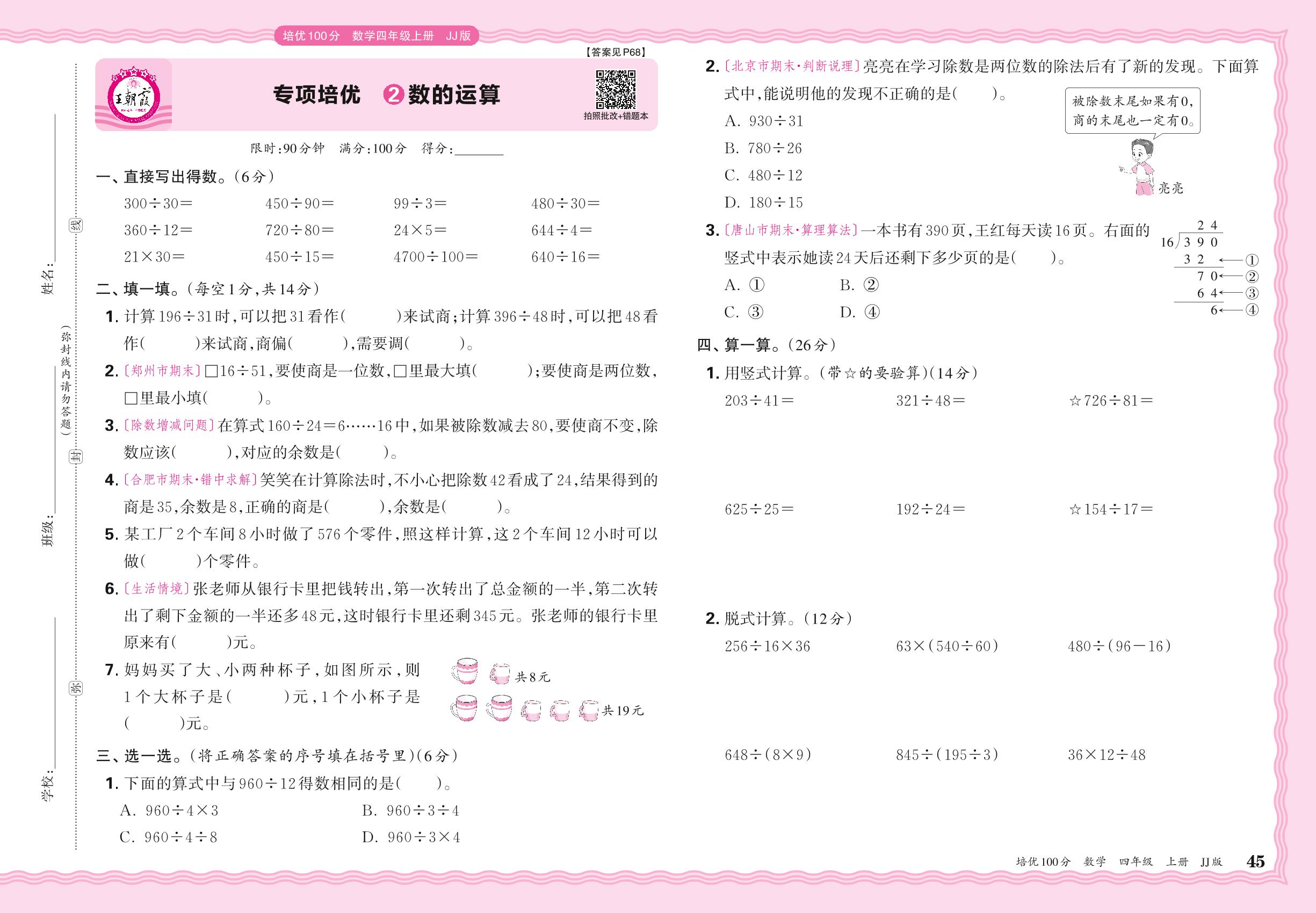 四年级数学冀教版上册专项卷