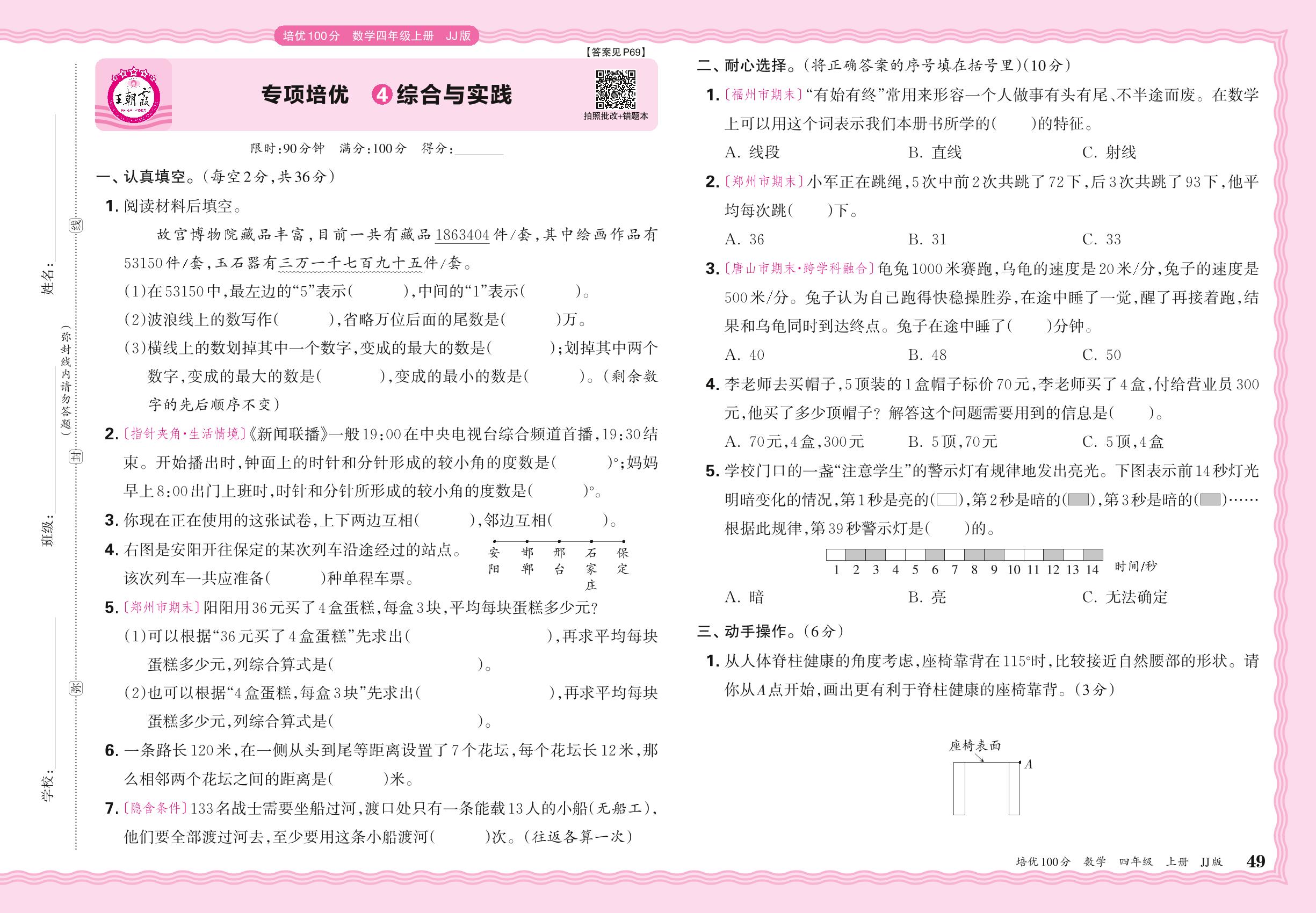 2024秋上册四年级数学冀教版 期末专项卷PY版·综合与实践【4】