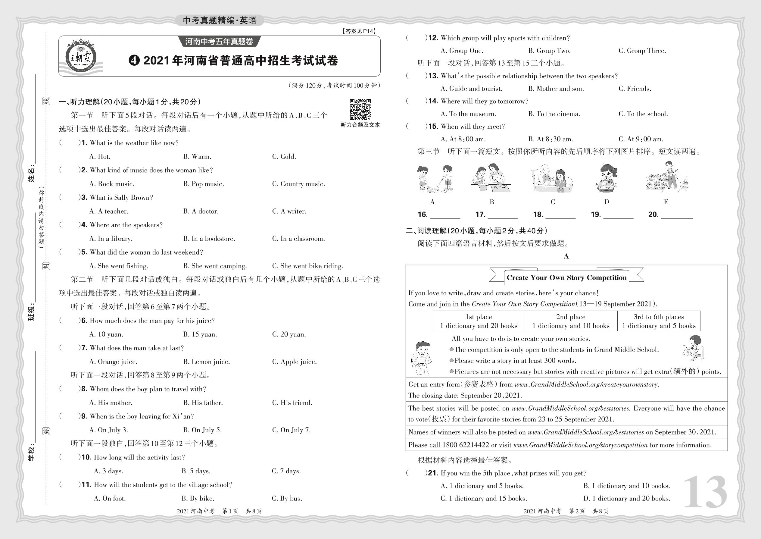 中考英语·2021年河南省普通高中招生考试试卷【4】
