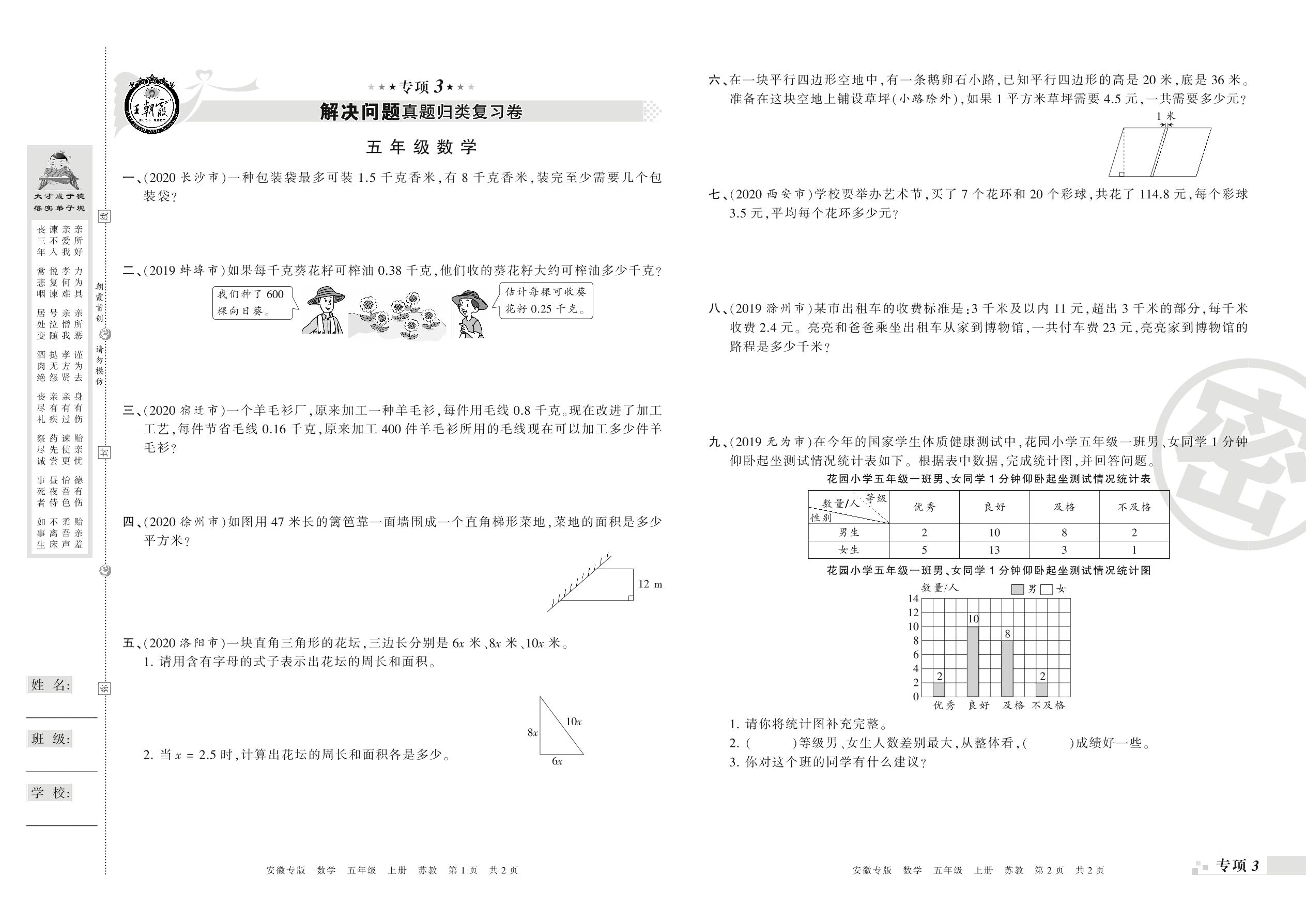 王朝霞期末专项卷——解决问题真题归类复习、新颖题速递:生活与数学五年级上册数学(苏教版)