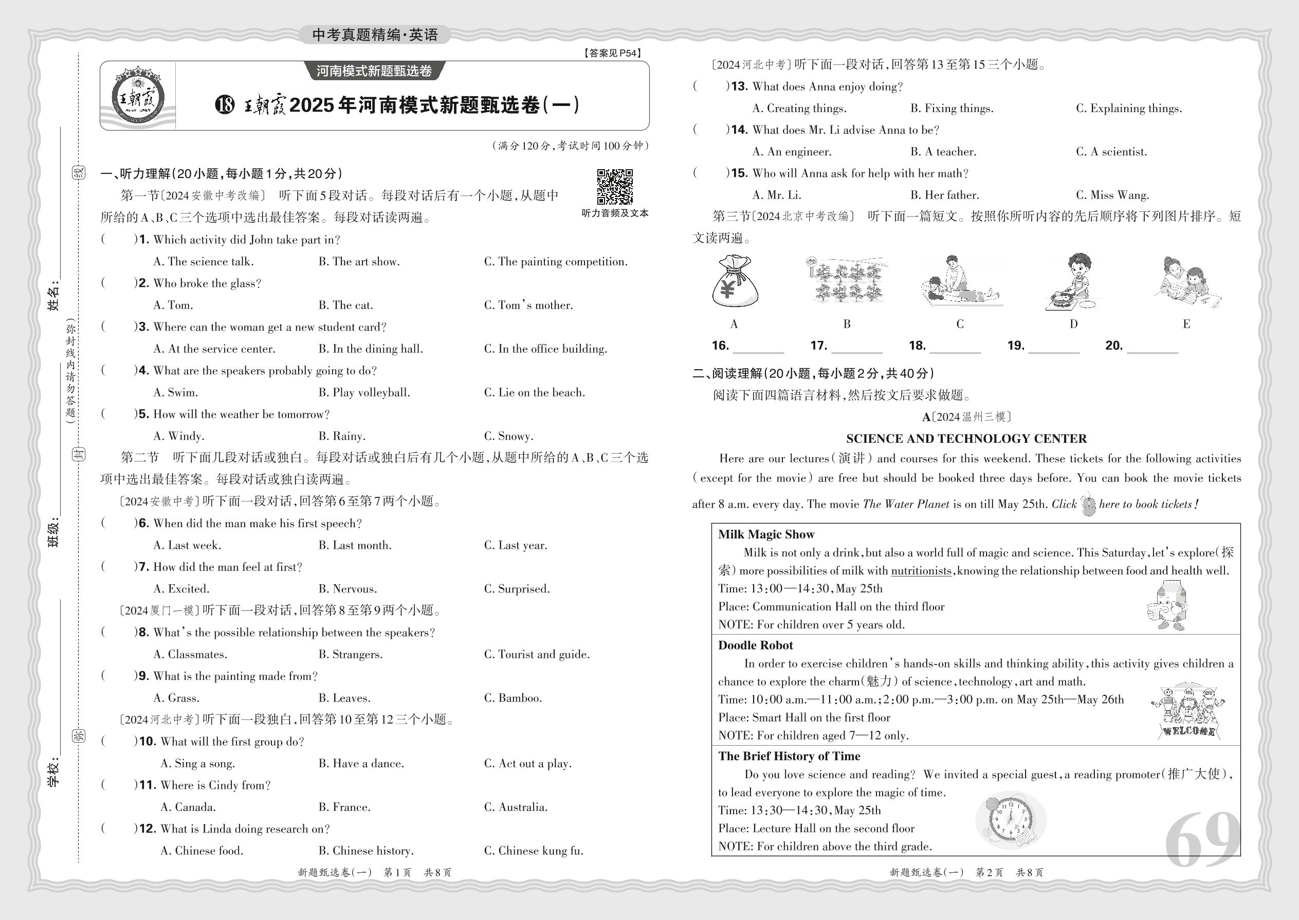 中考英语·王朝霞2025年河南模式新题甄选卷(一)【18】