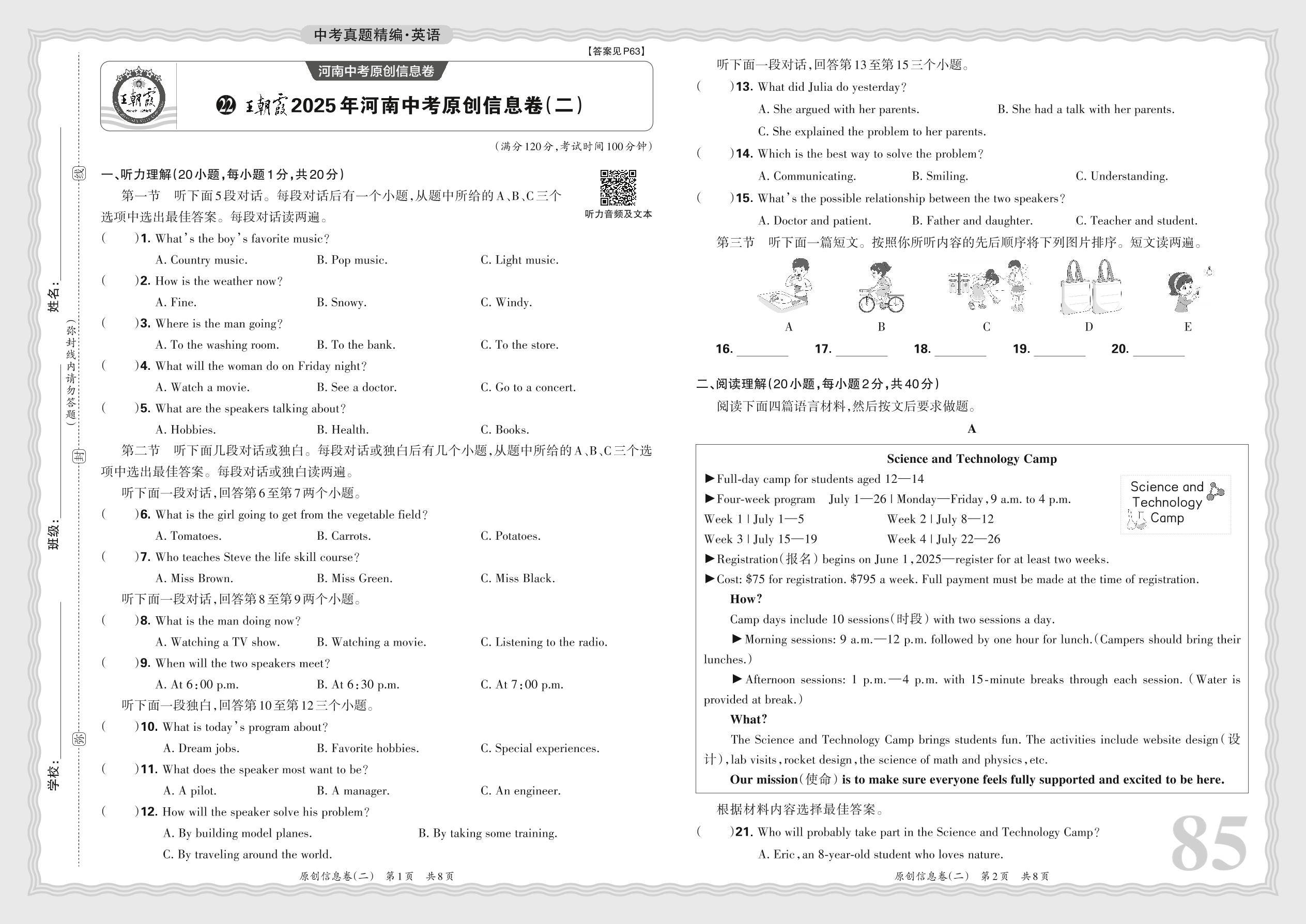中考英语·王朝霞2025年河南中考原创信息卷(二)【22】