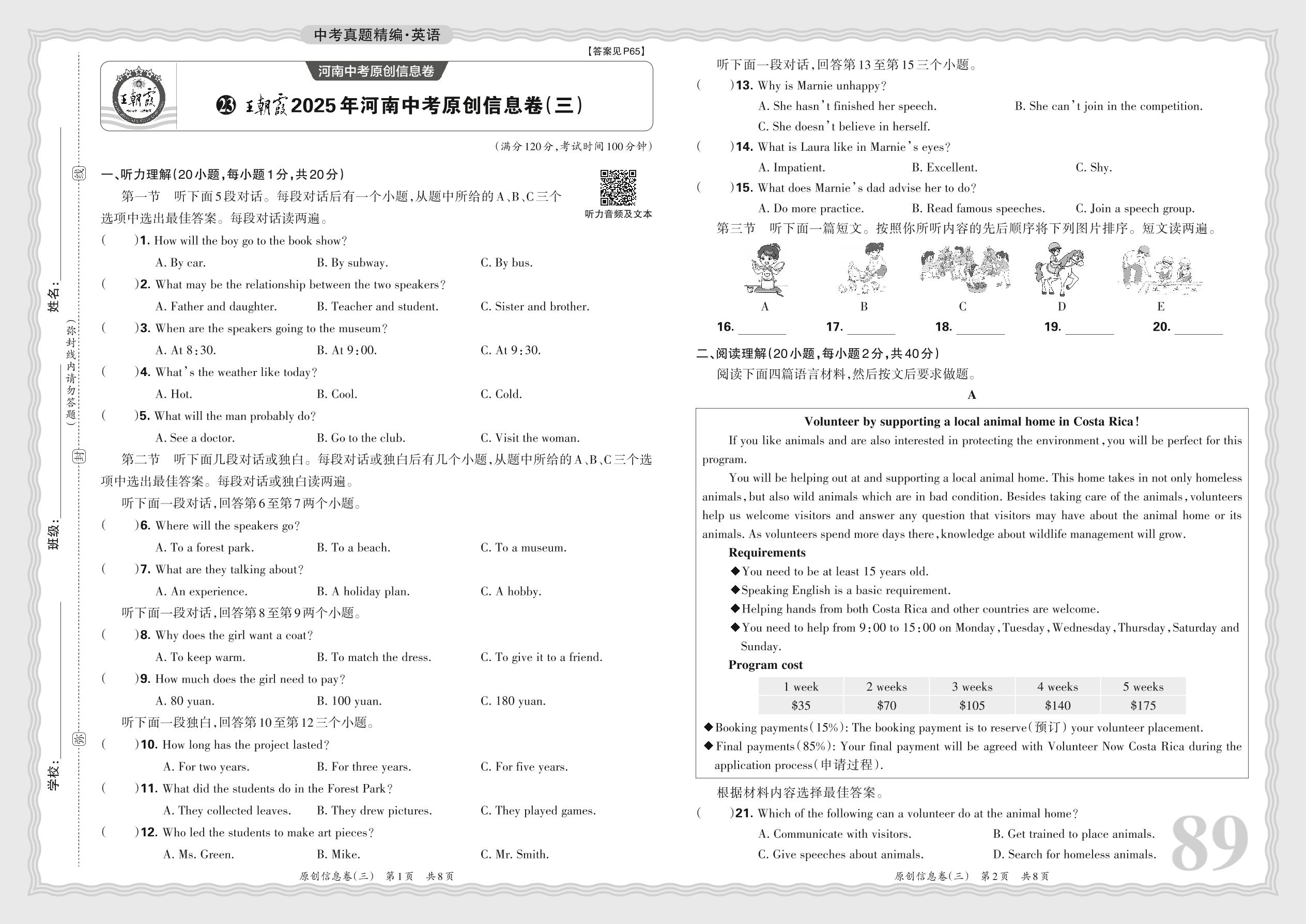 中考英语·王朝霞2025年河南中考原创信息卷(三)【23】